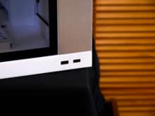 Ein RGB-LED-Streifen trennt das Glas der Vorderseite von der Aluminiumabdeckung der zweiten Kammer. Hier ist auch das I/O-Panel. Dort findet man den Power- und Reset-Schalter, zwei USB-3.0-Typ-A- und einen USB-3.1-Typ-C-Anschlüsse, je einen Audioeingang und -ausgang, sowie zwei Schalter zur Bedienung der RGB-Beleuchtung. Damit lassen sich alle Farben und Effekte des integrierten RGB-Controllers und damit des LED-Streifens in der Vorderseite durchschalten. In den vorderen Gehäusefuß sind zwei weitere USB-3.0-Typ-A-Anschlüsse verbaut.