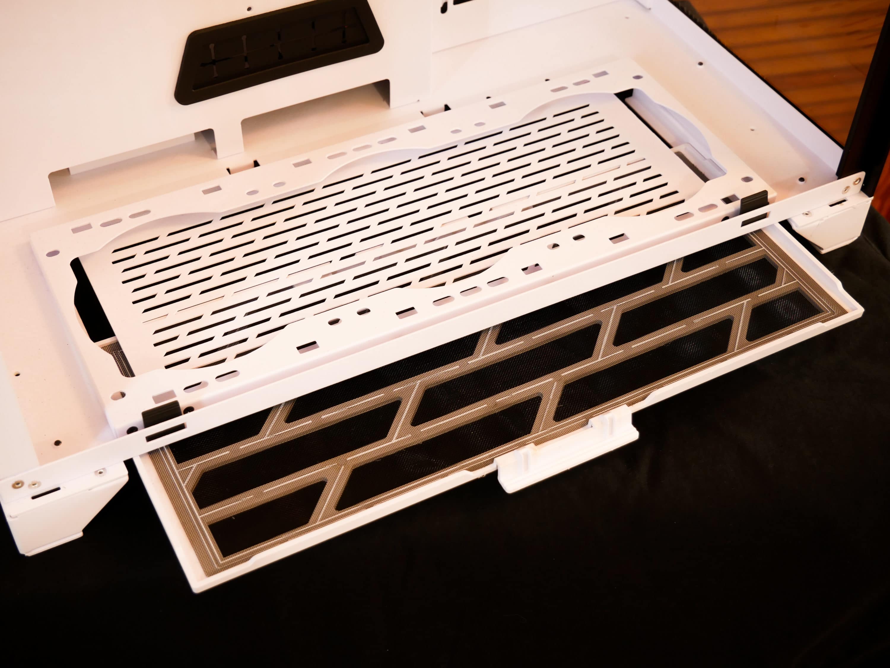 Da das Dynamic XL speziell für Wasserkühlungen konzipiert wurde, gehören zum Lieferumfang keine Lüfter. Diese kämen so höchst möglich garnicht zu Einsatz, da jede Custom-Wasserkühlung eigene Voraussetzungen hat. An den Luftein- und -auslässen am Boden, dem Deckel und der rechten Seite sind magnetische Staubfilter aus Mesh-Gitter angebracht.