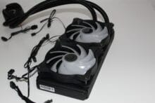 Wichtiger als die Beleuchtung ist jedoch die eigentliche Leistung der Kühlung. Um zu überprüfen, ob die Wasserkühlung auch mit der Konkurrenz mithalten kann, haben wir diese testweise auf einem Ryzen 5 3600 verbaut, der auf einem MSI B550 Tomahawk sitzt. Das Ganze wird mit 16 GB RAM und einer GIGABYTE RX 5600 XT GAMING OC in einem MetallicGear NEO Qube verbaut.