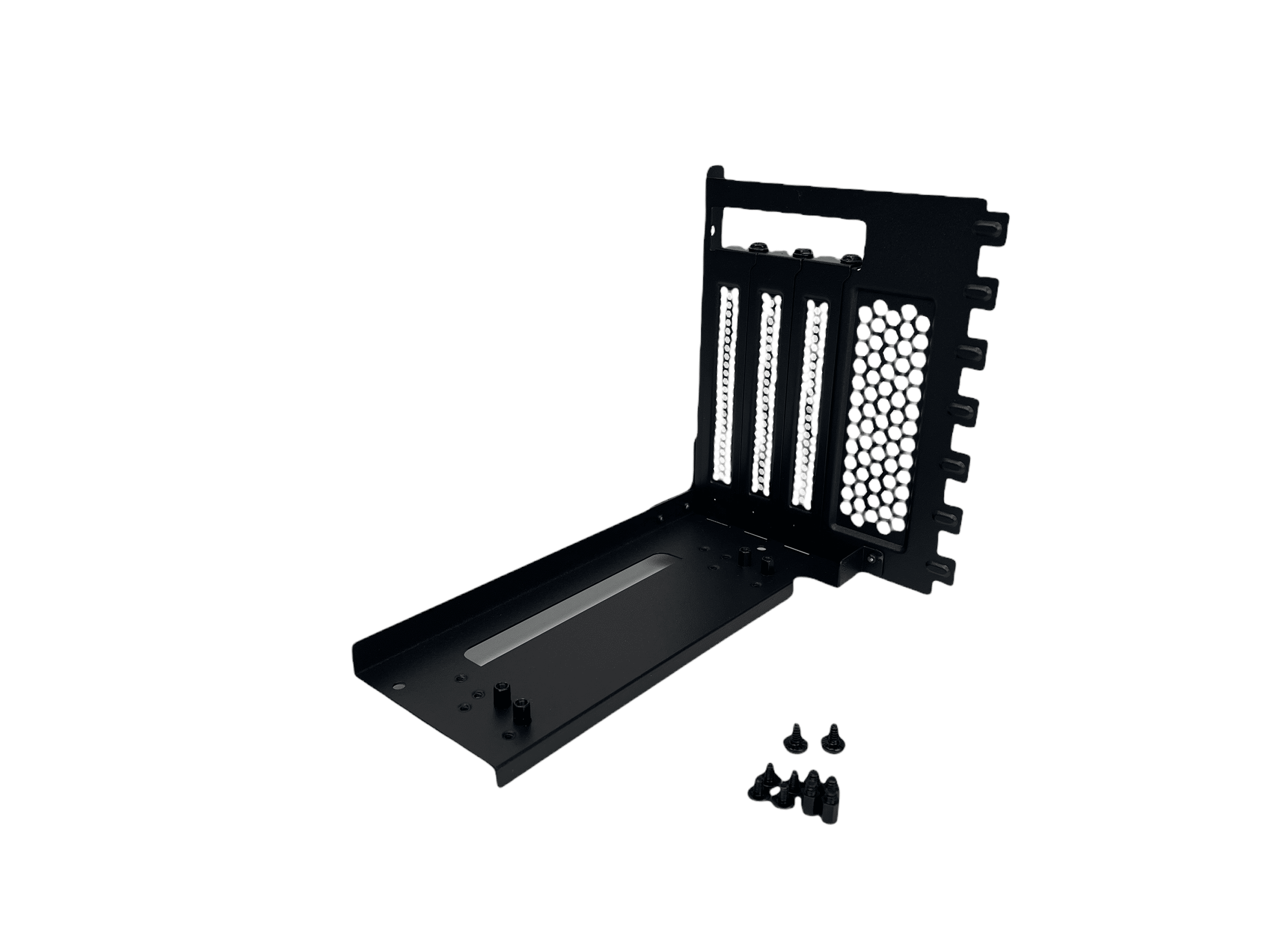 Im Inneren des Gehäuses befindet sich ein weiterer Karton, in dem eine vertikale Grafikkartenhalterung zu finden ist. Diese kann einfach nach dem Entfernen der PCI-Blenden, an dessen Stelle montiert werden. Ein Riser-Kabel ist nicht im Lieferumfang enthalten.