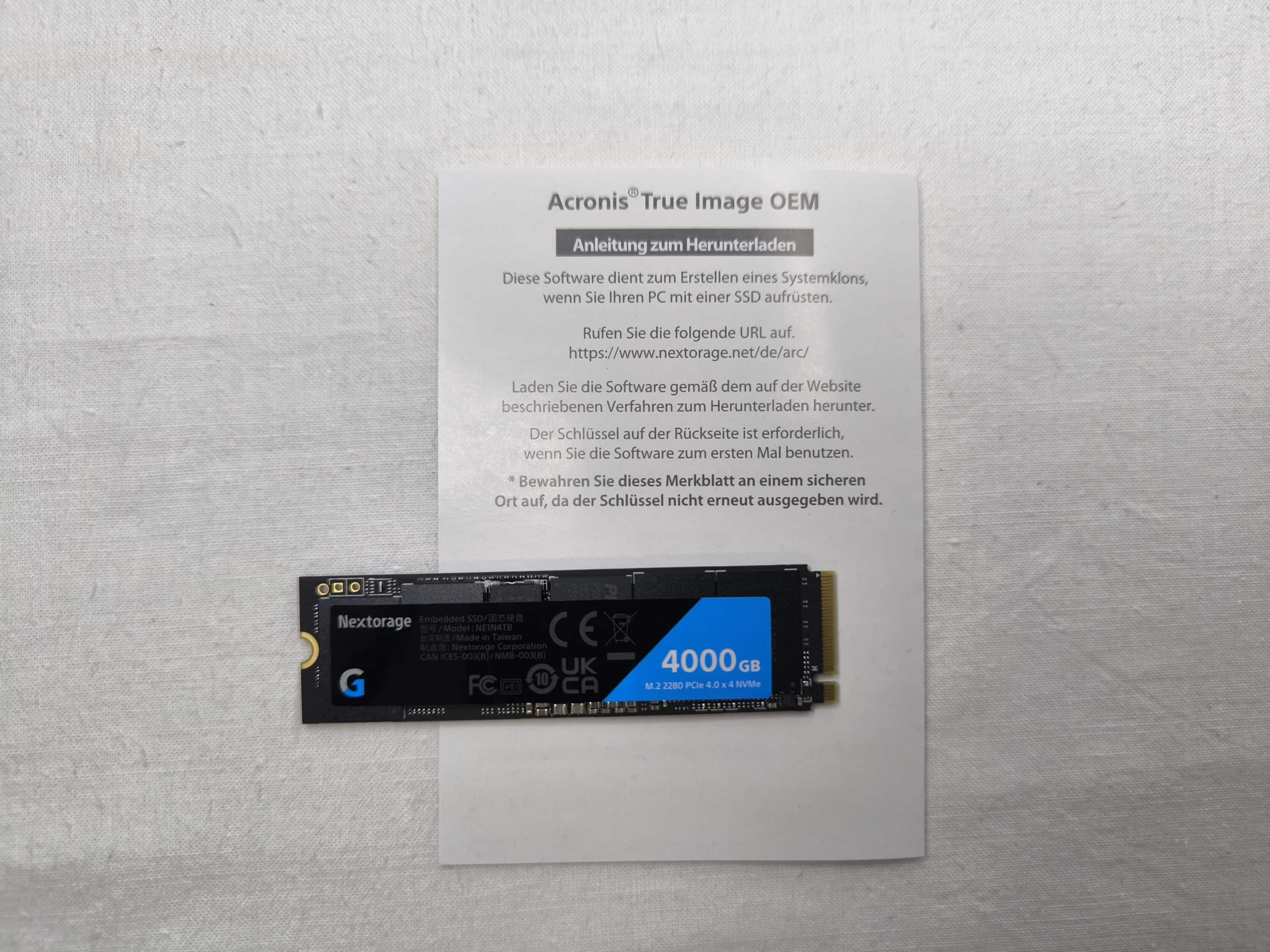 Zusätzlich zu der Nextorage G Series SSD legt der Hersteller einen Lizenzschlüssel für Acronis True Image OEM bei, über welchen sich die Software ein volles Jahr kostenfrei nutzen lässt. Mit der Anwendung selbst kann man u.A. Festplatten klonen, das Betriebssystem sichern oder spezifische Anwendungen mitsamt deren Einstellungen backuppen. Acronis True Image OEM lässt sich dabei über den entsprechenden Link von Nextorage herunterladen.