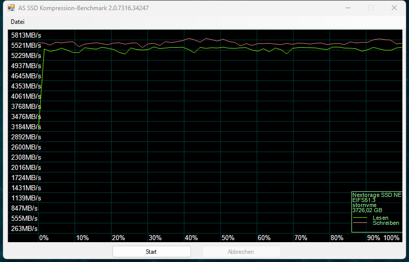 Die Nextorage G Series 4 TB SSD macht über die Benchmarks hinweg einen soliden Eindruck und kann sich tabellarisch betrachtet weit vorne platzieren. Der leistungsstarke Controller kann über den gesamten Zeitraum hinweg eine gute Figur abliefern und die Performance konstant aufrecht halten.