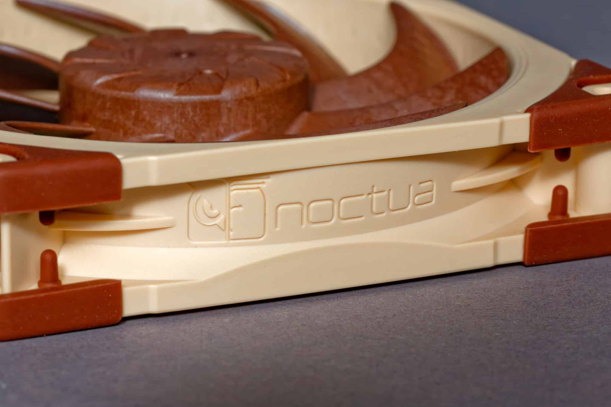 Ja, diese Farbkombination entspricht nicht jedermanns Geschmack, aber erfahrungsgemäß folgt irgendwann die schwarze Alternativvariante. Braun ist eben kaum mit irgendwelchen anderen Komponenten optisch kompatibel. Wobei – so ganz stimmt das nicht. Immer häufiger findet man in letzter Zeit Gehäuse mit Echtholzkomponenten, wie beispielsweise das Fractal Design North, dem Noctua-Lüfter ganz gut stehen.