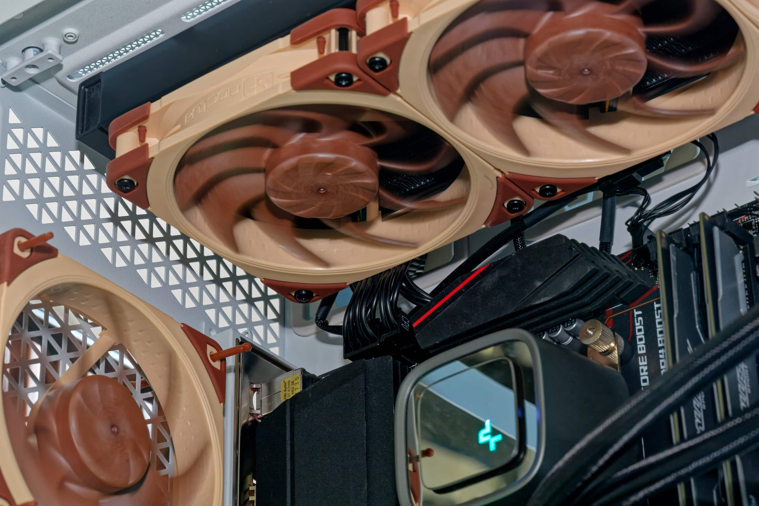 Ansonsten sind es doch Lüfter, die rein auf Performance getrimmt sind und nicht unbedingt sichtbar sein müssen. Auch Dinge wie RGB-Beleuchtung sucht man vergebens.