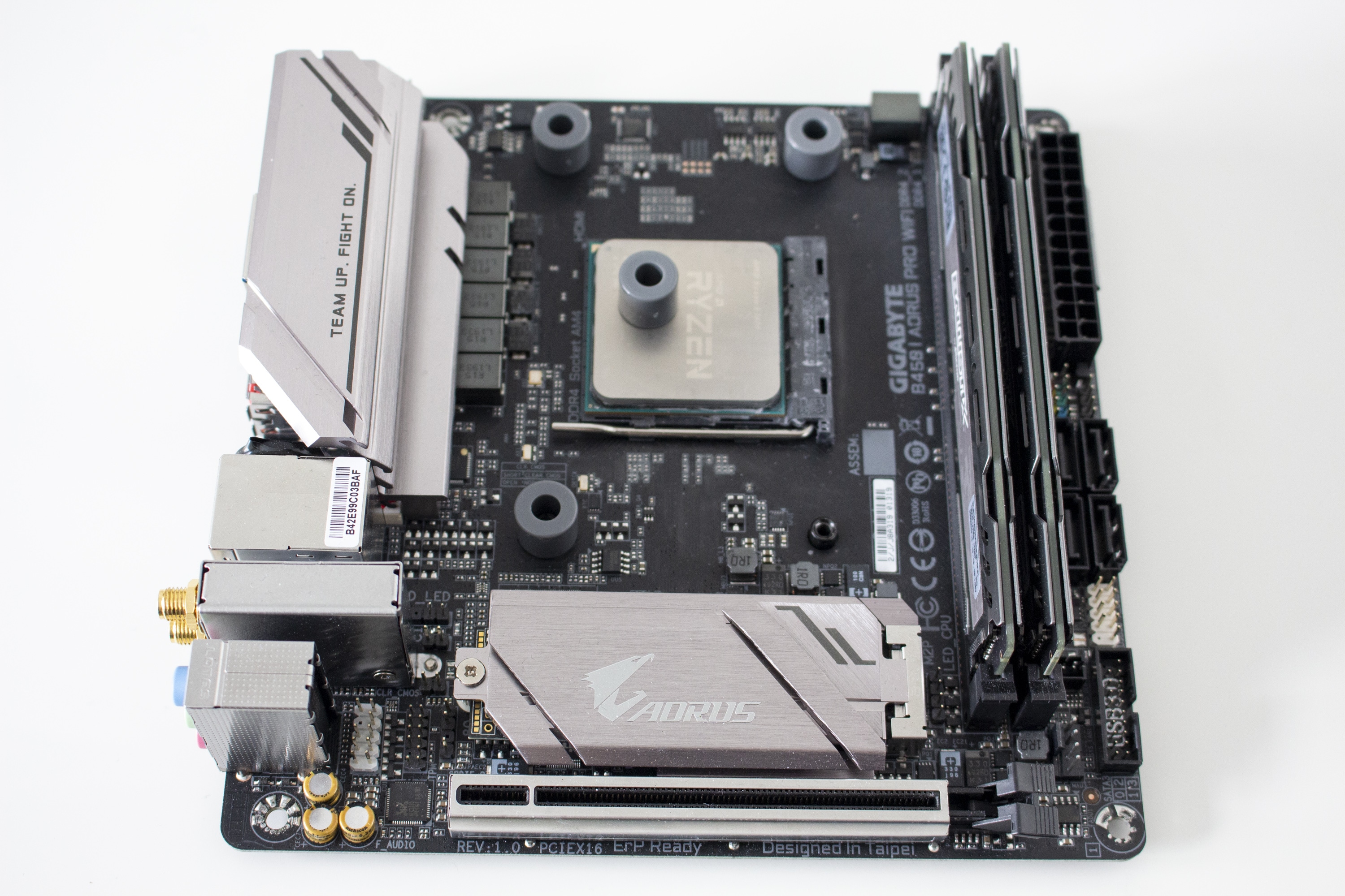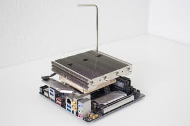 Wie bereits im vorherigen Kapitel aufgezeigt, verwenden wir als Testhardware ein AM4-System auf Basis des Ryzen 5 1400 und dem Gigabyte B450 I Aorus Pro WIFI. Der Ryzen läuft auf 3.8 GHz bei 1,25V. Der Lüfter des NH-L12 S1 Ghost war so verbaut, dass dieser die Luft durch den Kühler zieht und auf das Mainboard befördert.