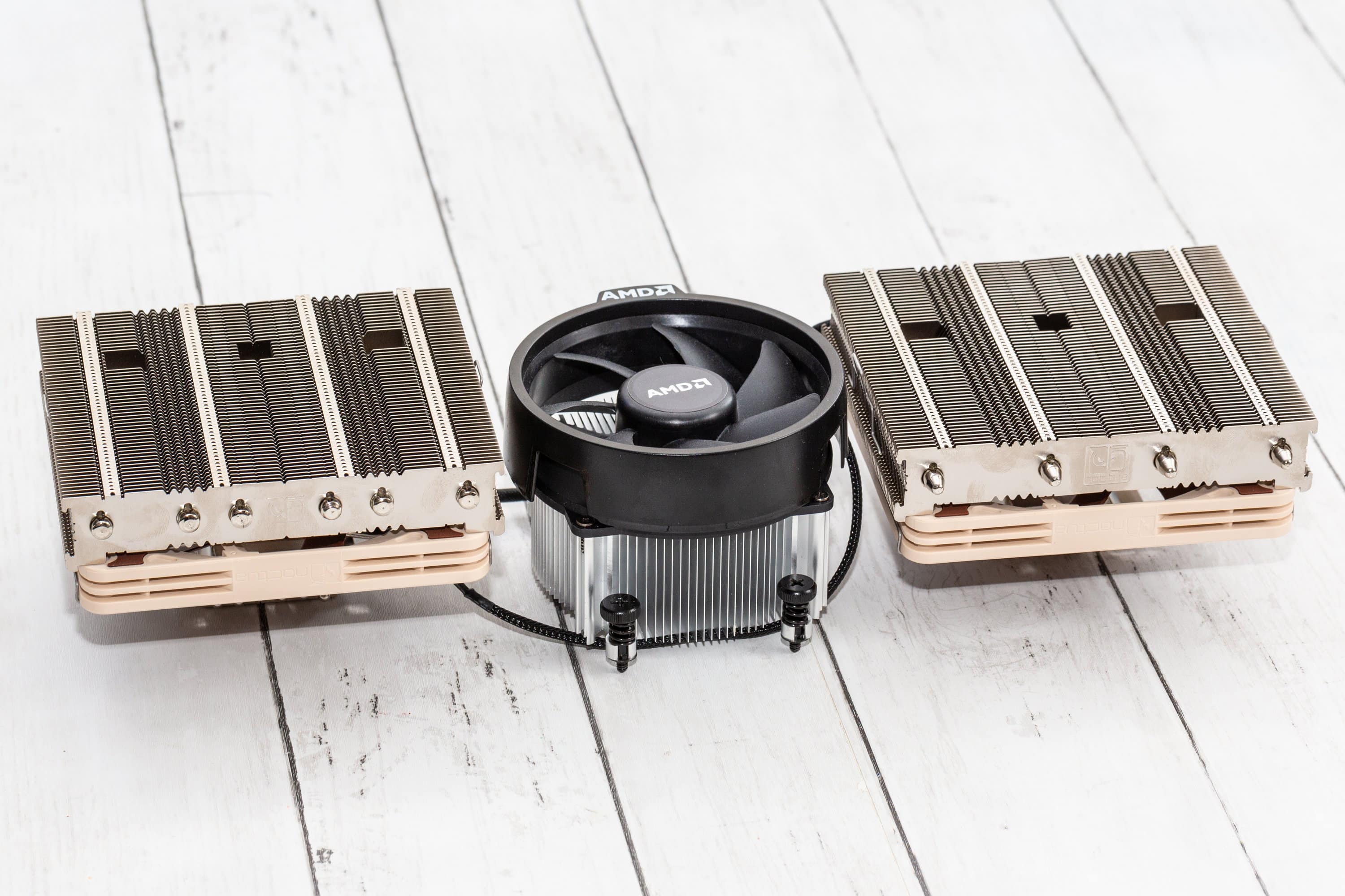 Im Test schlagen beide Versionen des Noctua NH-L12S den AMD-Stock-Kühler deutlich. Noch deutlicher als bei der Temperatur jedoch bei der Lautstärke. So ist der AMD Wraith Spire bereits bei 50% PWM lauter als die Noctua-Lüfter bei 100% PWM. Die Noctua-Kühler sind durch die identischen Lüfter auch lautstärkemäßig gleichauf. Bei 50% PWM sind sie kaum hörbar, bei 100% PWM wahrnehmbar, aber vollkommen erträglich. Wenn der Lüfter unten montiert ist, wie es standardmäßig der Fall ist, dann ist das Luftrauschen etwas intensiver wahrnehmbar.