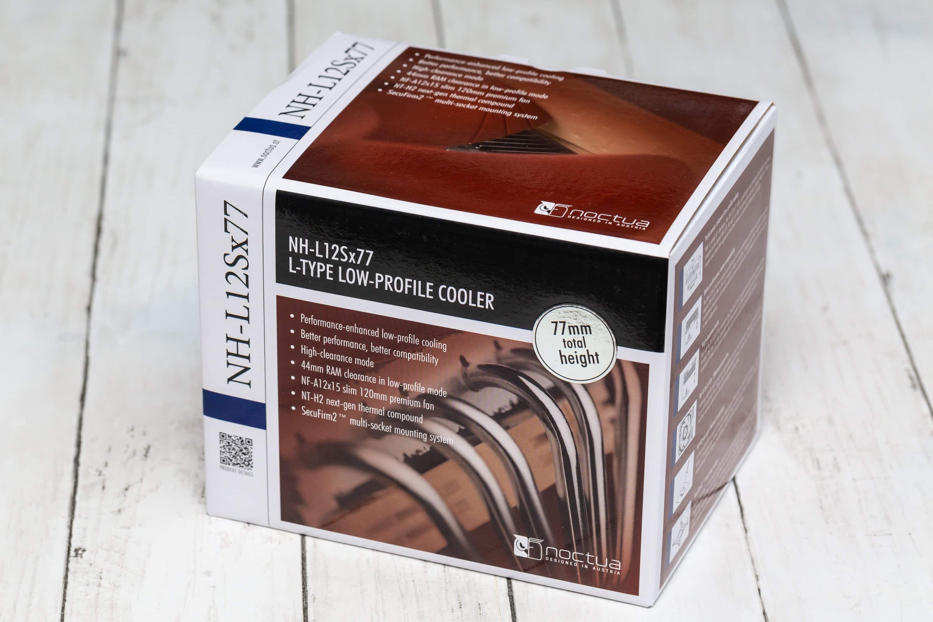 Eine kurze Analyse des Namens des Noctua NH-L12Sx77 im Voraus. NH wird für Noctua Heatsink stehen. Das L für Low Profile und das 12 für den 120-mm-Lüfter. Das S ist schwieriger zuzuordnen. Es könnte „successor“, also Nachfolger, bedeuten, denn der originale Noctua NH-L12S wird als „successor to the award-winning NH-L12“ beworben. Das x77 beschreibt die Höhe in Millimetern. Diese Art der Benennung wird bereits bei Lüftern verwendet. So gibt es den Noctua NF-A12x25 als 25 mm hohen Lüfter und den Noctua NF-A12x15 als 15 mm hohen Lüfter, wobei letzterer bei diesem CPU-Kühler zum Einsatz kommt.