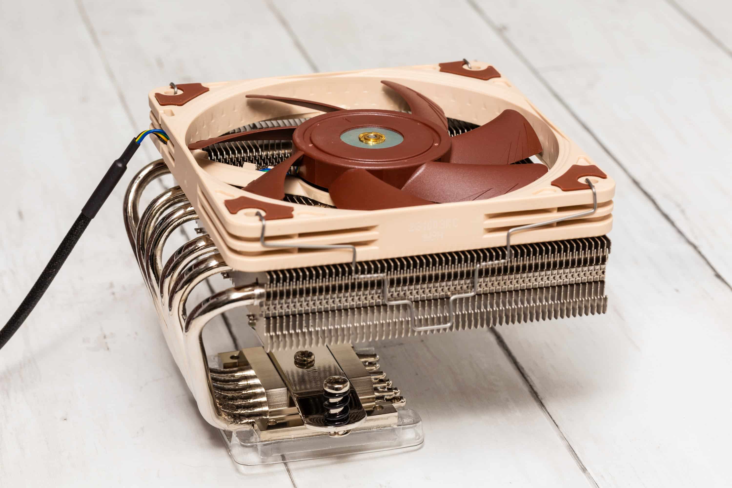 Was die Lautstärke angeht, geben sich die beiden Noctua-Kühler nichts. Das ist auch nicht verwunderlich, da beide mit dem gleichen Noctua NF-A12x15 PWM ausgeliefert werden. Bei 50% Leistung, was knapp über 1000 RPM entspricht, sind beide nahezu unhörbar. Dagegen ist der AMD Wraith Spire bereits bei 50% lauter als die Noctua-Kühler bei 100% Leistung. Diese sind zwar auf voller Drehzahl hörbar, aber noch immer ganz angenehm. Ist der Lüfter unten angebracht, ist die Leistung zwar im hohen Drehzahlbereich erstaunlich stark, aber das Lüfterrauschen ist merklich schärfer als wenn der Lüfter oben auf dem Kühler sitzt.