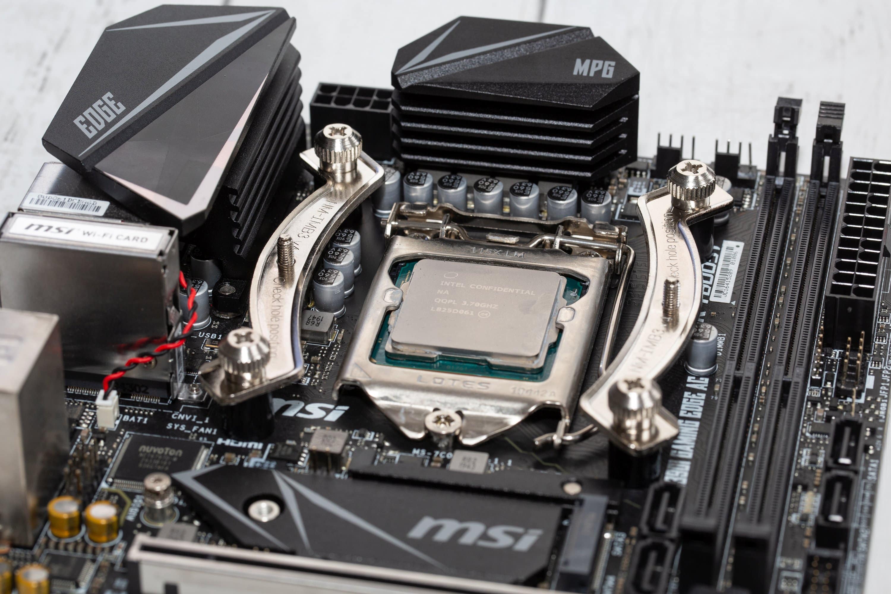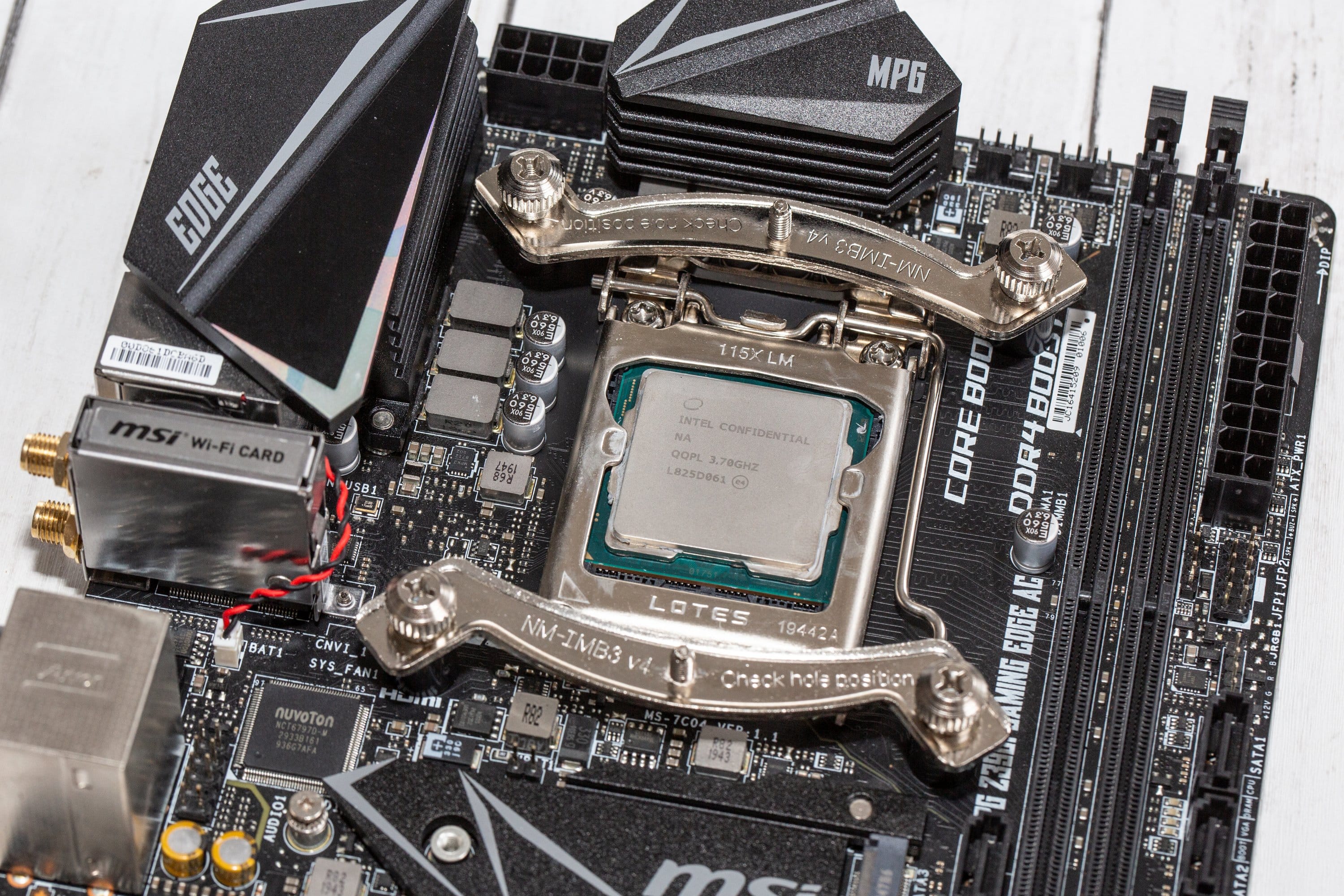Durch die quadratische Anordnung der Löcher auf Intel-Sockeln kann man frei entscheiden, wie man den Kühler drehen möchte, damit dieser nicht mit dem Arbeitsspeicher oder Komponenten auf dem Mainboard, wie beispielsweise Spannungswandler-Kühlern, kollidiert.