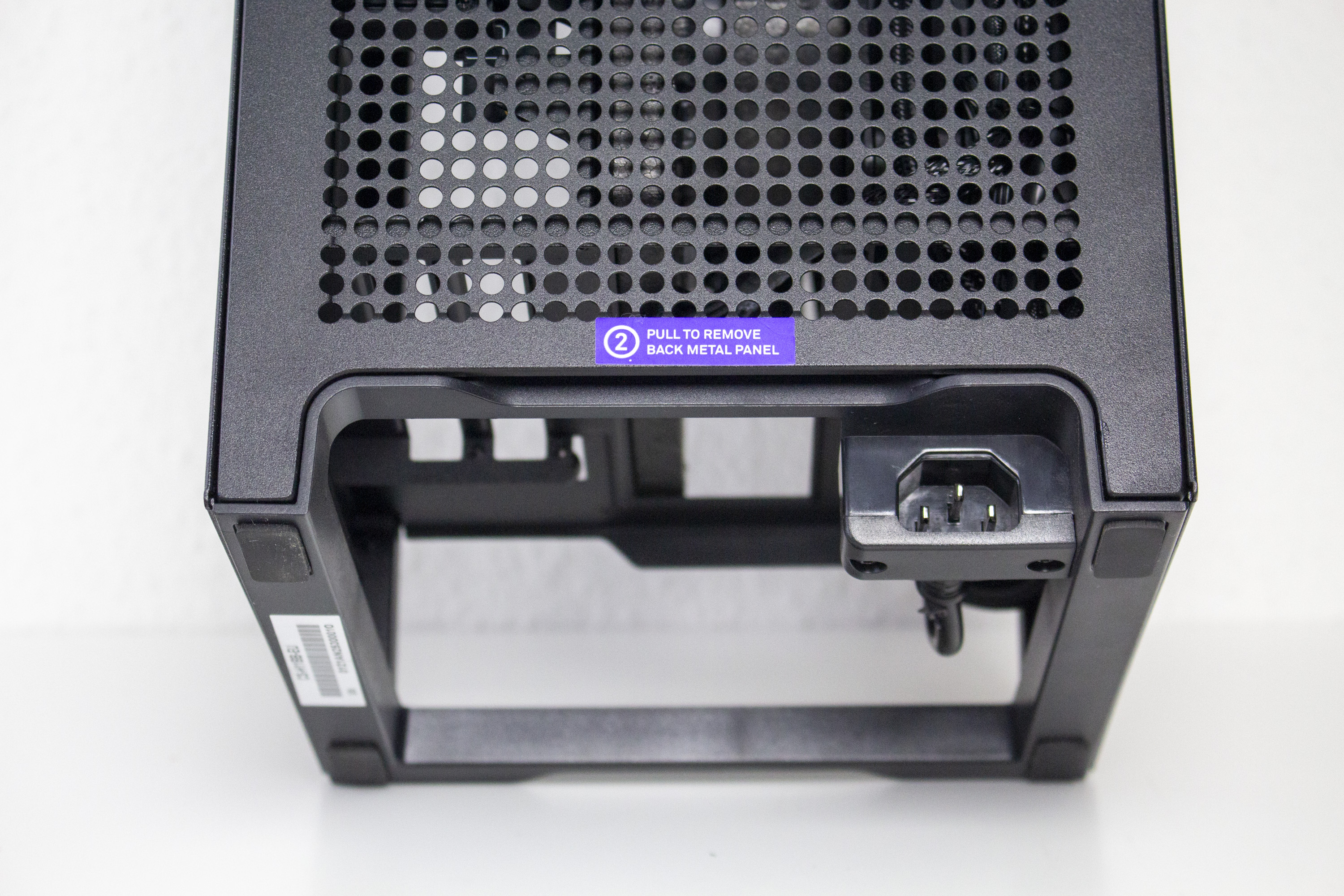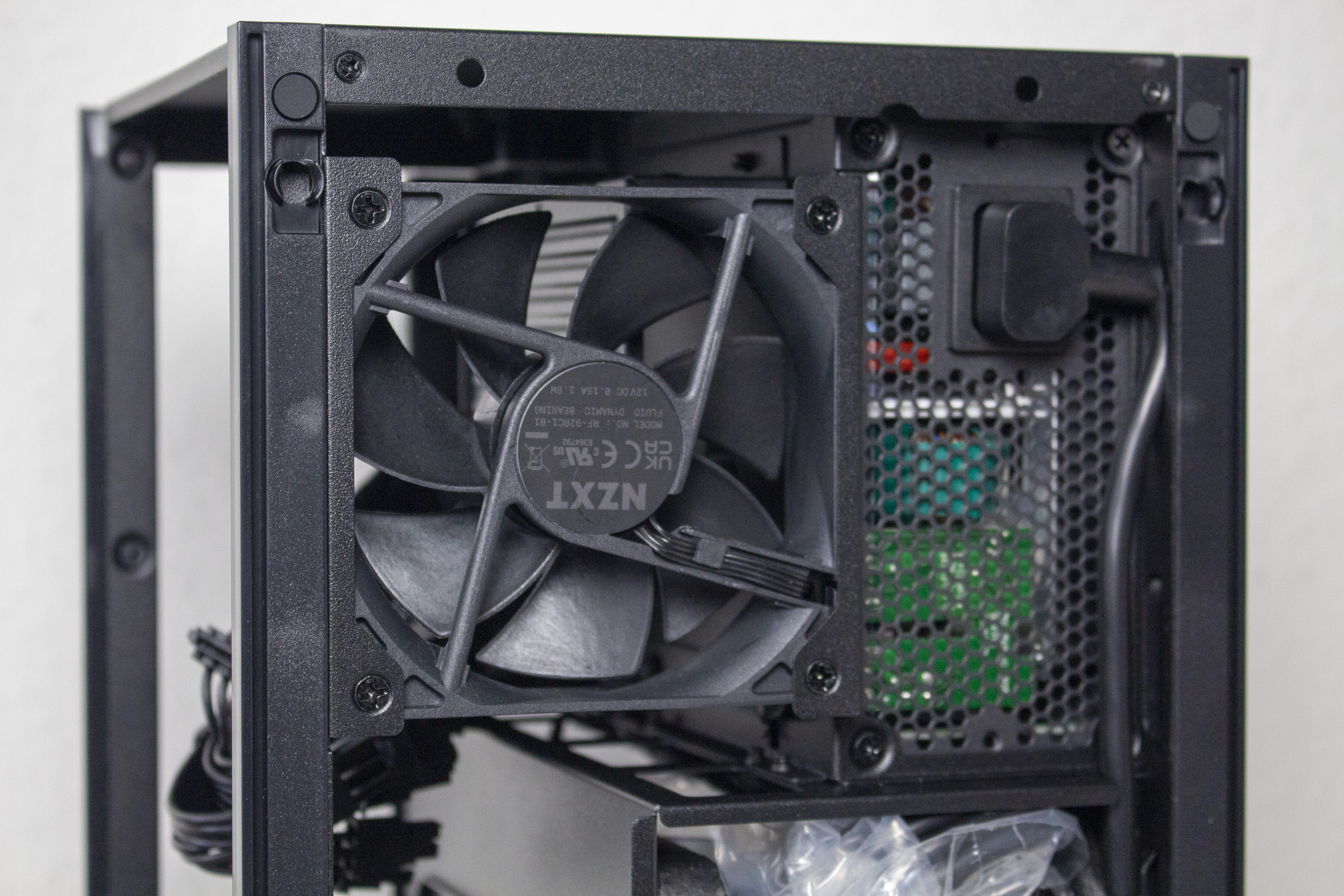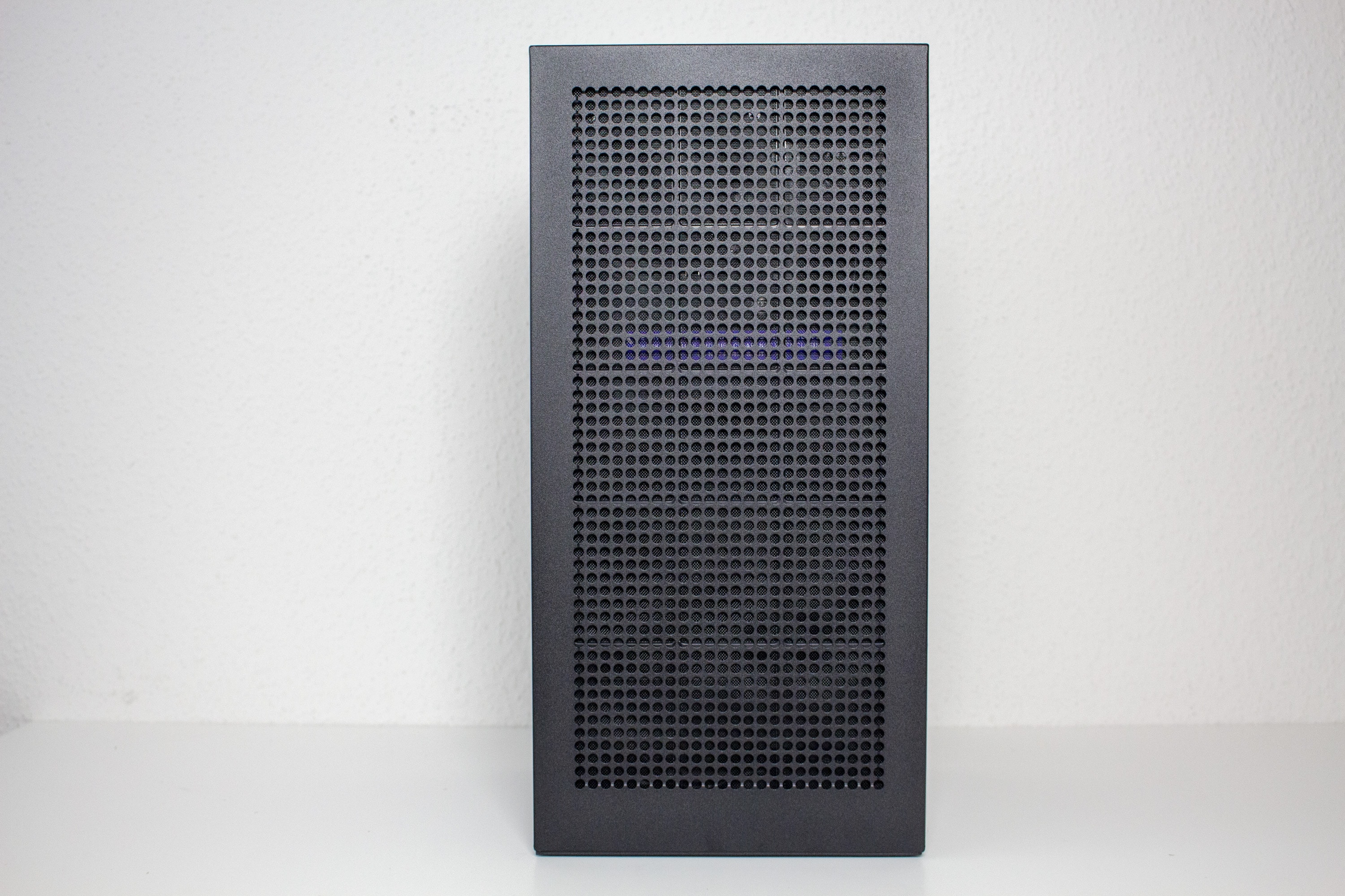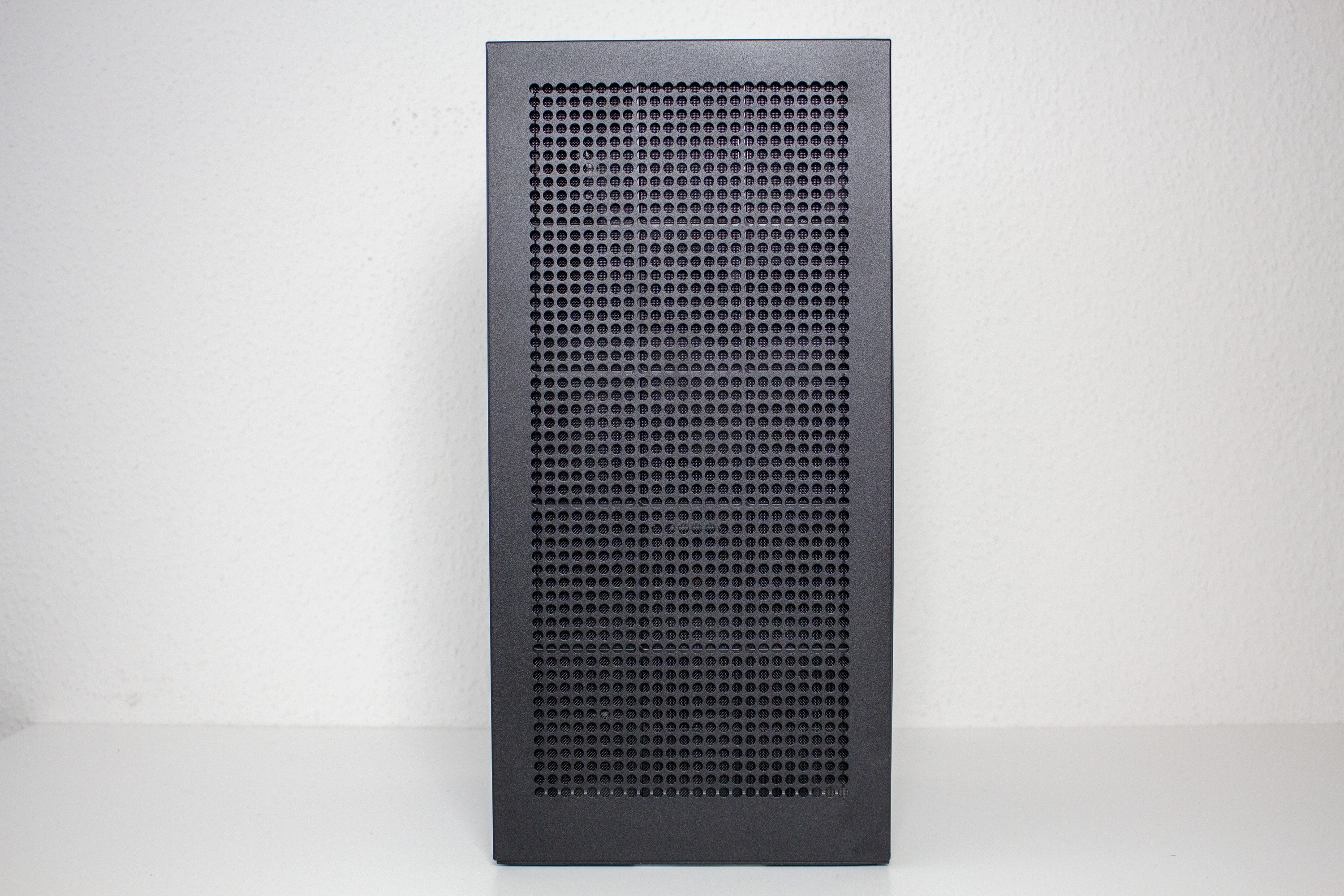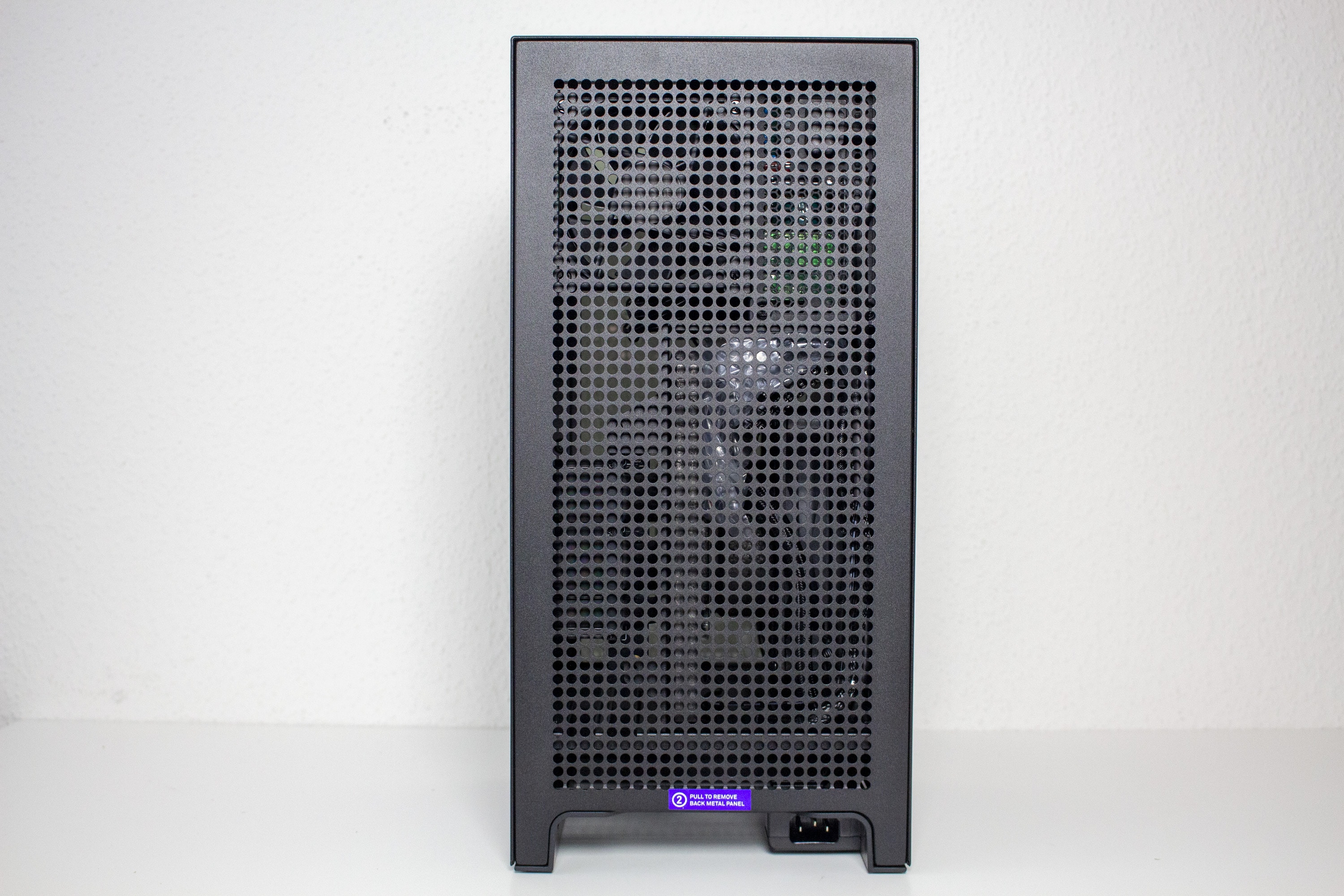 Die Rückseite ist, anders als die Front, für einen höheren Airflow optimiert. Das Design des Belüftungsgitters ist dabei identisch zu dem der Seitenteile. Das Backpanel reicht jedoch im unteren Bereich nicht bis ganz auf den Boden. Das liegt an der großzügigen Öffnung, über die alle externen Anschlusskabel an die Komponenten geführt werden können. Einen Staubfilter hat NZXT an der Rückseite aber nicht platziert.