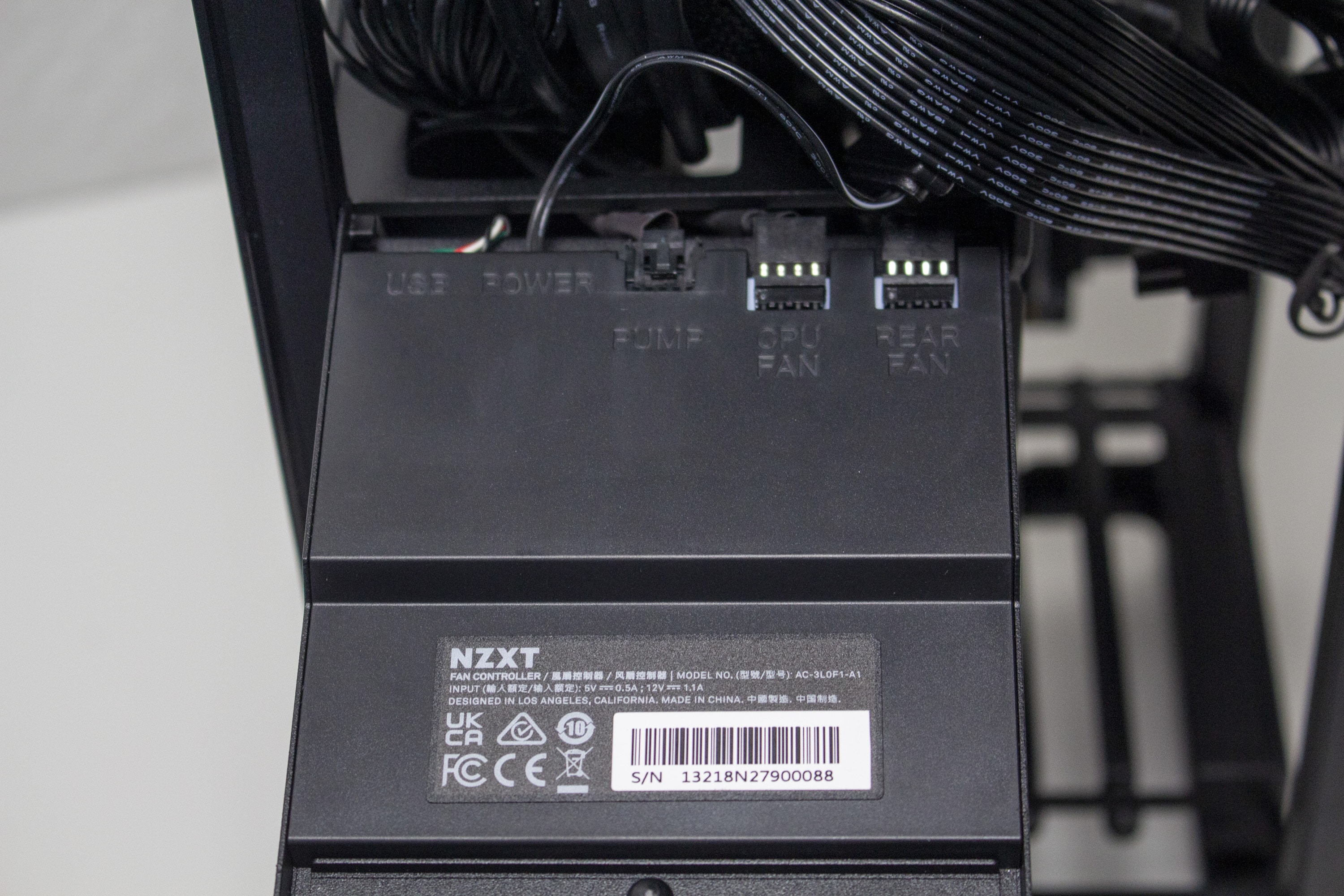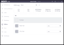 Da NZXT das H1 v2 zusätzlich mit einem 92-Millimeter-Gehäuselüfter ausgestattet hat, viele ITX-Mainboards aber kaum über Lüfteranschlüsse verfügen, spendiert der Hersteller der neuen H1-Variante zudem eine Lüftersteuerung. Diese ist über einen internen USB-2.0-Anschluss mit dem Mainboard verbunden und verfügt über zwei PWM-Ports (CPU, Rear), einen SATA-Stecker für die Stromversorgung sowie einen proprietären Anschluss für die Überwachung der Pumpe. Die Ansteuerung des PWM-Controllers erfolgt unter Windows über die CAM-Software.