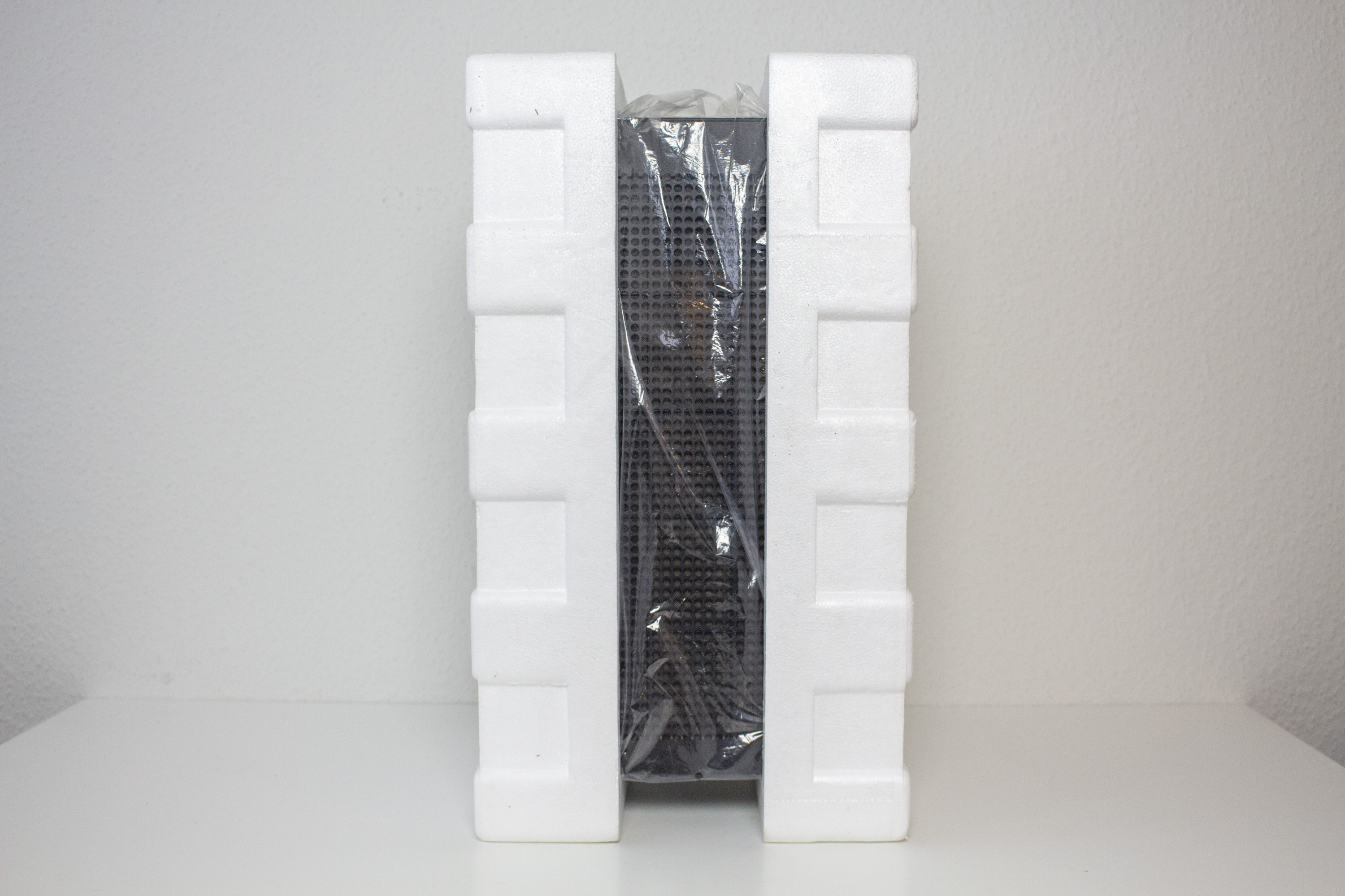 Typisch für NZXT-Gehäuse, kommt auch das H1 v2 in einem farbig-bedruckten Karton. Gestaltet in den Herstellerfarben Weiß und Lila zeigt der Karton neben einigen 3D-Produktbildern auch die technischen Daten des ITX-Gehäuses und listet zudem die wichtigsten Features übersichtlich auf. Innerhalb des Kartons wurde das H1 v2 in zwei Blöcke aus normalem Styropor und eine Kunststofffolie gehüllt. Trotz des verhältnismäßig hohen Gewichts von fast 8 Kilogramm, dürfte die Umverpackung Beschädigungen beim Transport gut vermeiden. Das Montagezubehör befindet sich in einem braunen Karton und wurde in der GPU-Kammer platziert. Die Kartonage beinhaltet das Netzkabel, alle notwendigen Montage-Schrauben für den Systembau, einige Kabelbinde bzw. Kabelverlängerungen und das Montagezubehör für die Wasserkühlung.