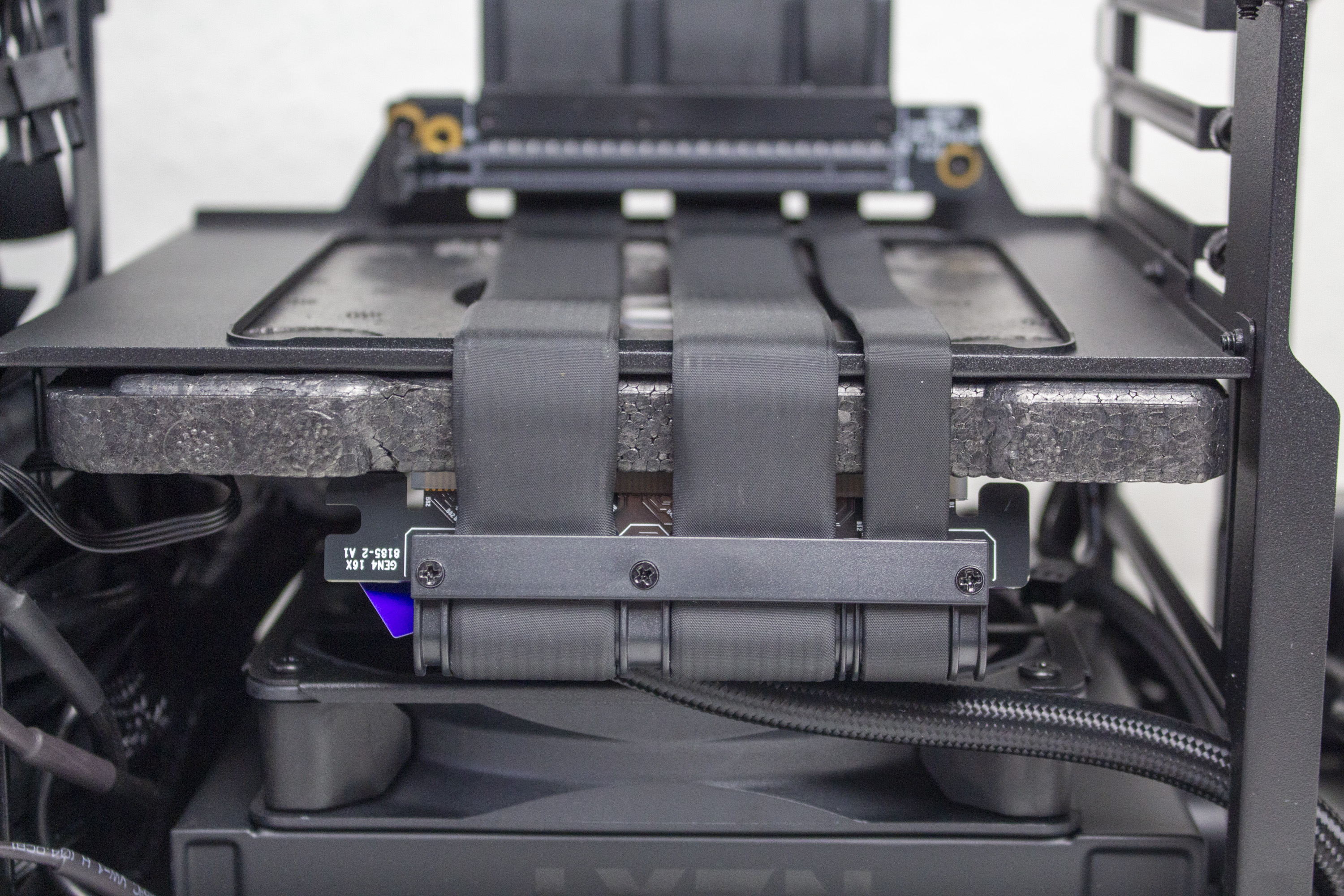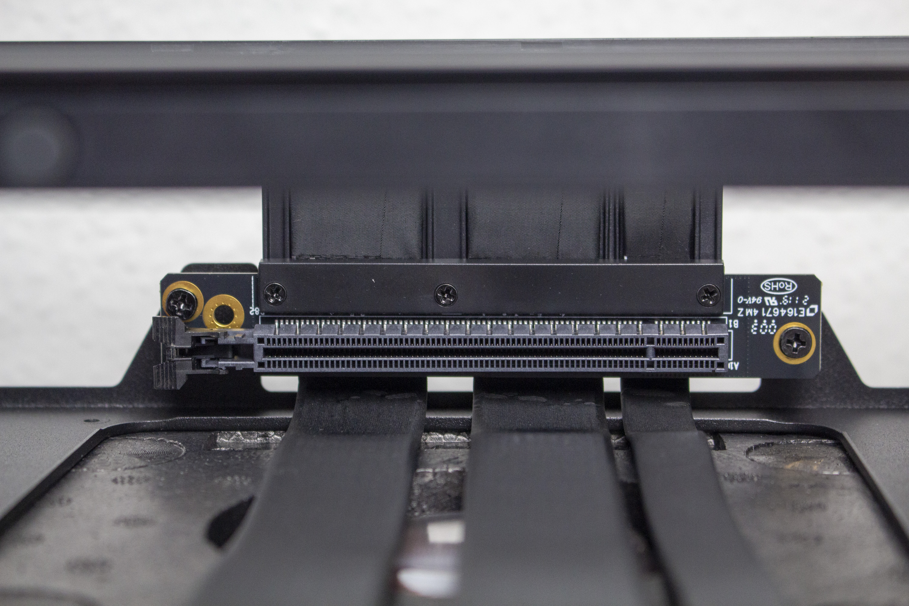 Das Riser-Kabel hat sich bei der ersten Version des H1 durch das Layout der Platine als eine potentiell gefährliche Fehlerquelle entpuppt. Daraus hat NZXT gelernt und das neue PCIe-4.0-Riser-Kabel bei einem anderen Zulieferer und speziell für das H1 v2 produzieren lassen. Die Montagelöcher der Schrauben sind nun isoliert. Dadurch bohrt sich die Schraube nicht in die Platine bzw. die Leiterbahnen. Ein Kurzschluss ist somit ausgeschlossen. Außerdem verfügt das Kabel an den Stellen wo es gebogen wird über eine Art Schiene bzw. einen Knickschutz.