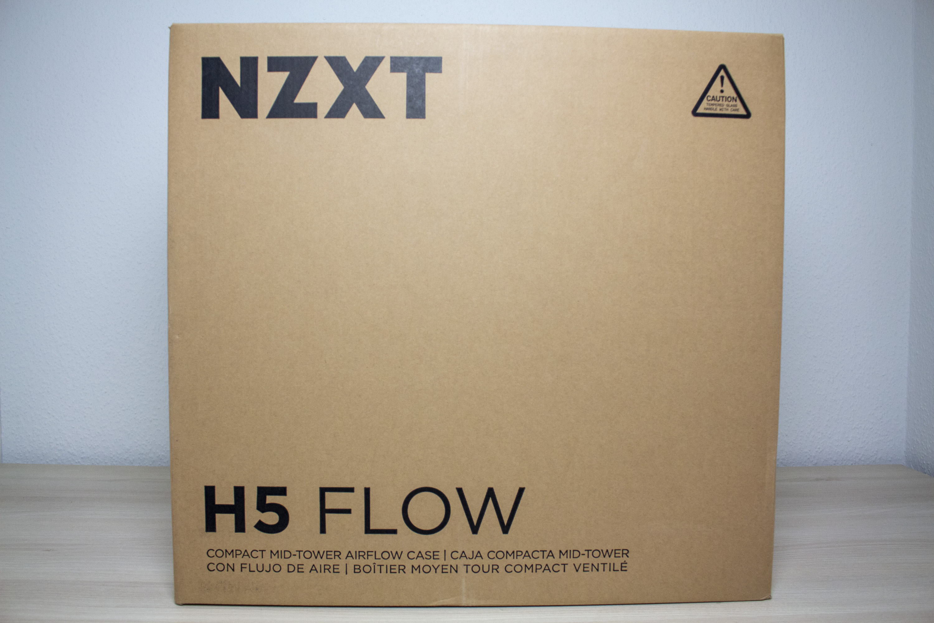 NZXT verpackt das H5 Flow in einem schlichten Karton aus brauner Pappe, der aber mit kleinen farbigen Akzenten versehen wurde. Diese Akzente sind typisch für den Hersteller in der Farbe Lila gehalten. Neben einigen Produktbildern und dem Gehäusenamen sind zudem auch alle technischen Angaben zum H5 Flow auf der Verpackung zu finden. Innerhalb des Kartons hat NZXT den Midi-Tower in zwei Blöcke aus Styropor sowie eine Folie aus Kunststoff eingehüllt.