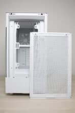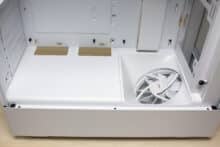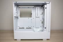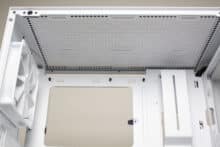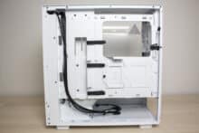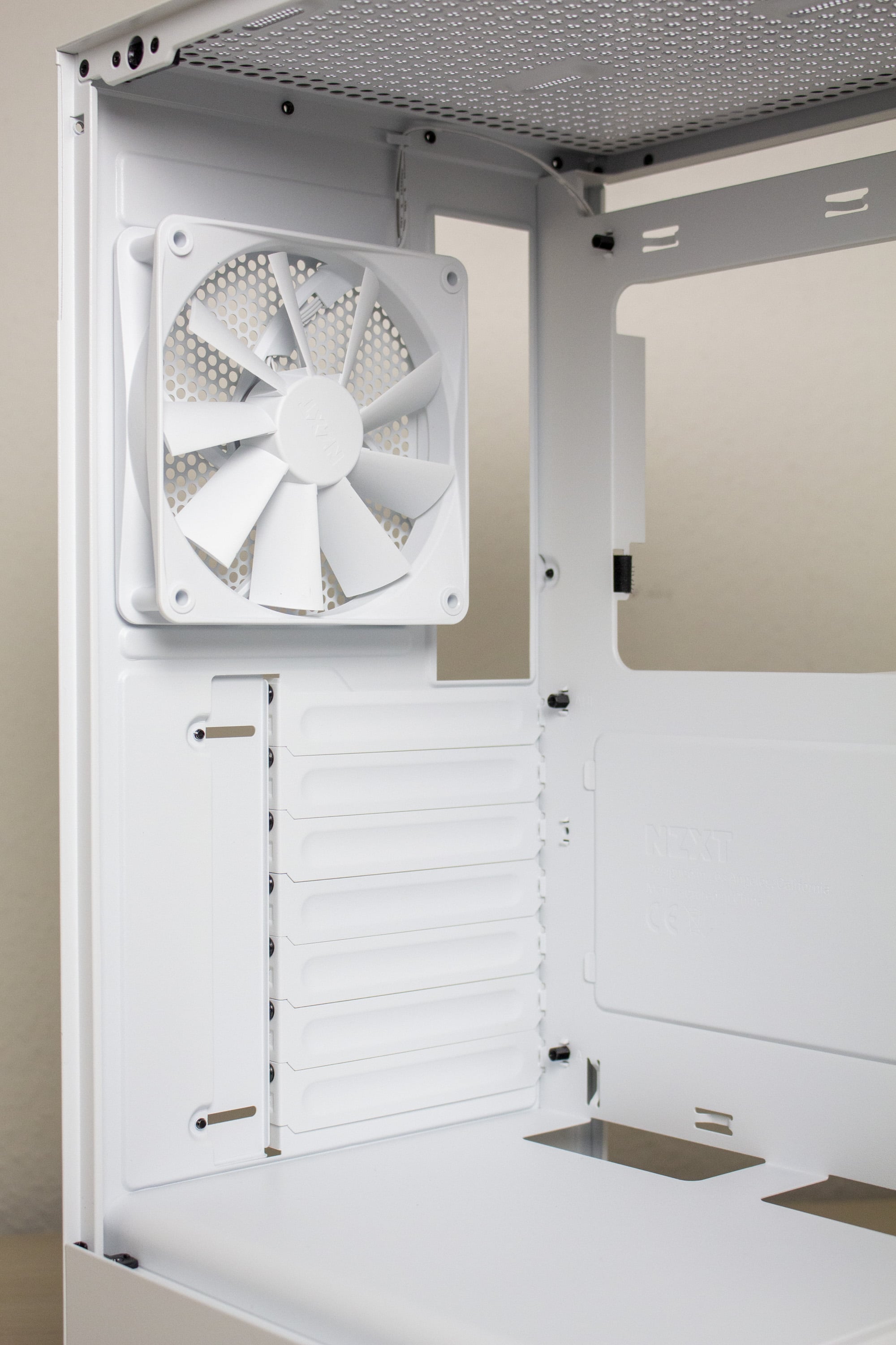 Trotz des doch recht hohen Kaufpreises von über 100€, gibt es beim NZXT H5 Flow aber auch negative Eigenschaften. So ist die Materialstärke des rechten Seitenteils für ein Gehäuse dieser Preisklasse definitiv zu gering. Ebenfalls fragwürdig ist der speziell positionierte Lüfter in der Netzteilabdeckung. Zumindest bei der Flow-Variante bringt ein Lüfter hinter dem Mesh für die GPU bessere Temperaturen als der Ventilator in der Netzteilabdeckung. Zudem verzichtet NZXT aufgrund des Lüfters auf eine Montagemöglichkeit für 360-mm-Radiatoren in der Front.