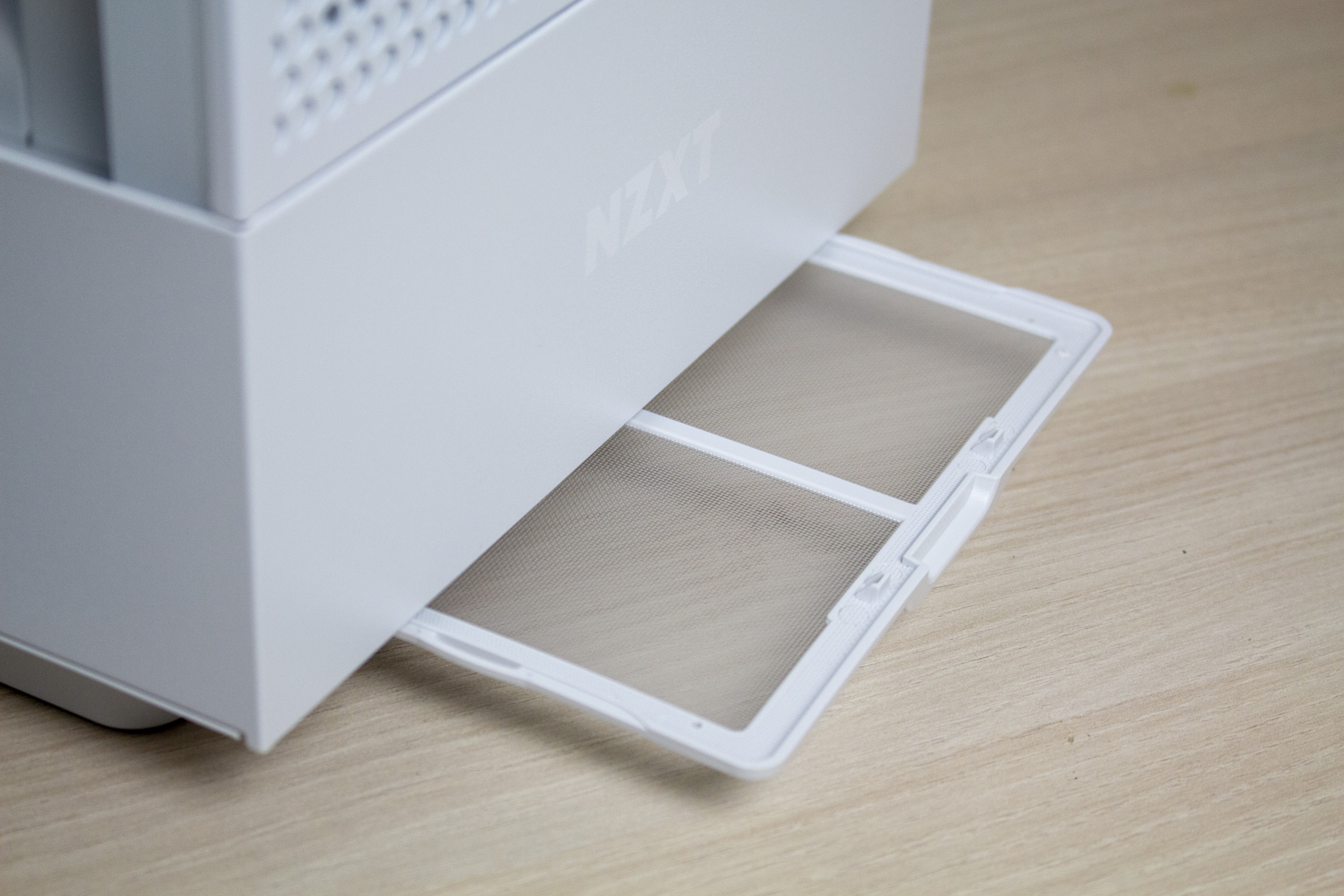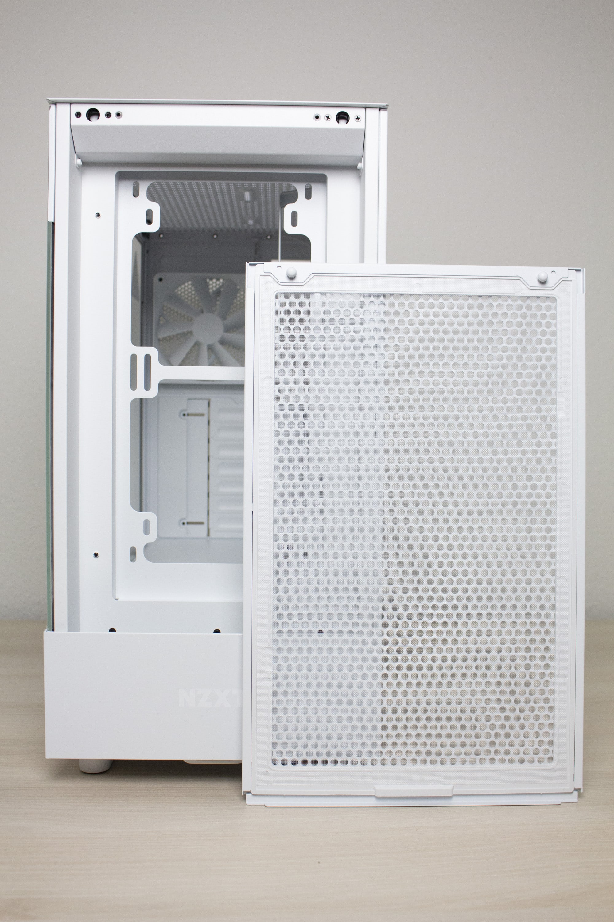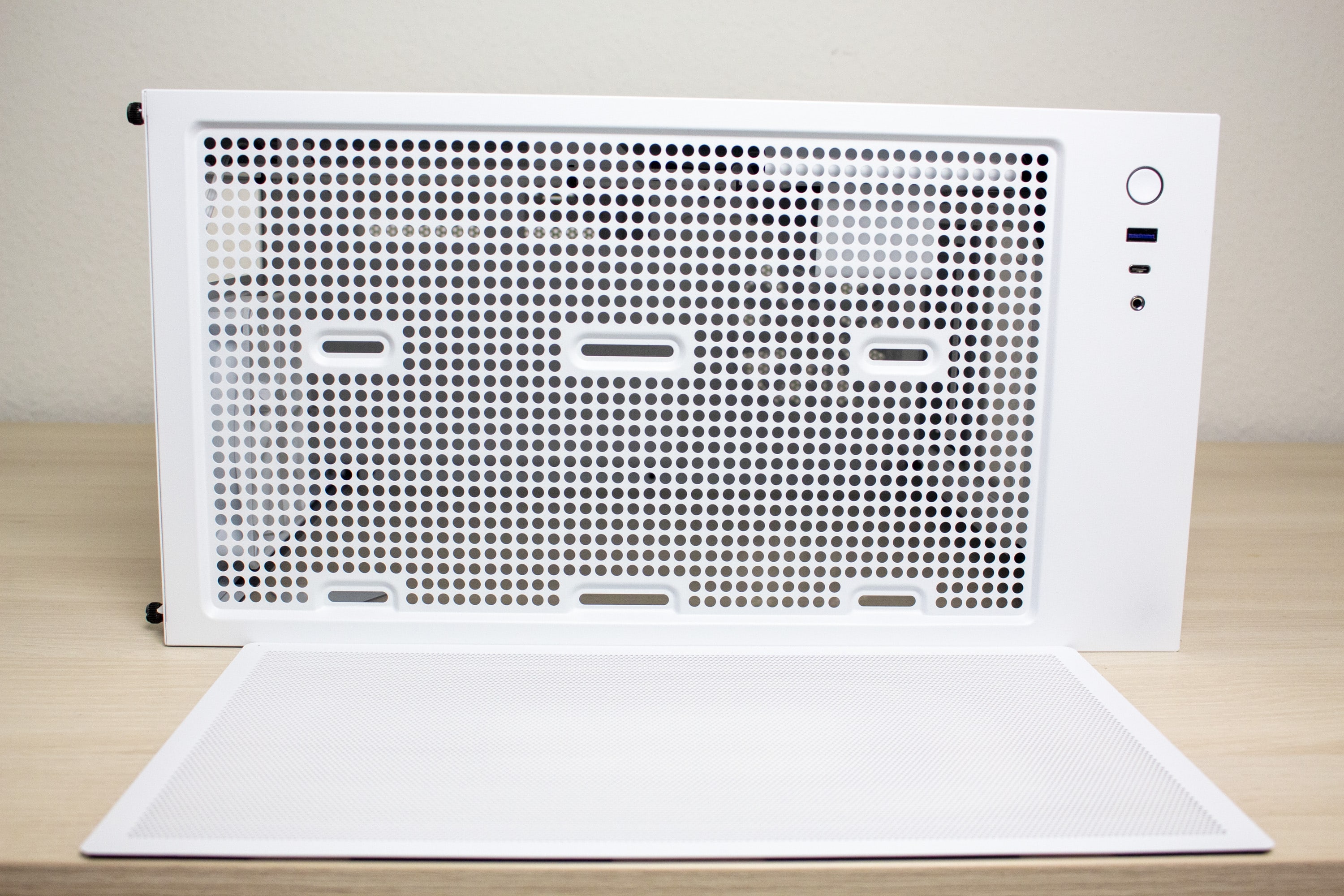 An der Deckelpartie wurde wohl der größte Änderung vorgenommen. So findet sich hier nun anstatt eines Montageplatzes für einen einzelnen 120/140-Millimeter-Lüfter endlich ein Belüftungsgitter für zwei 120-Millimeter Lüfter oder einen 240-MIllimeter-Radiator. Zum Schutz vor Staub wurde auch hier ein magnetischer Staubfilter platziert. Ebenfalls im Deckel hat NZXT das I/O-Panel untergebracht. Dieses verfügt über einen HD-Audio-Combo-Port, einen USB-3.2-Typ-A- sowie einen USB-3.2-Typ-C-Anschluss und einen Power-Button.