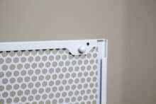 Das Frontpanel des NZXT H5 Flow besteht aus einer großen Stahlplatte, die über Push-Pins am Korpus befestigt ist und mit zahlreichen Belüftungslöchern versehen wurde. Diese sollten aufgrund Ihrer Größe wenig restriktiv wirken. Zusätzlich hat NZXT hinter dem Gitter einen magnetischen Staubfilter platziert. Hinter dem Staubfilter verbaut NZXT einen modularen Montagerahmen für zwei 120- oder zwei 140-mm-Lüfter bzw. entsprechend große Radiatoren. Der untere Bereich der Front ist verschlossen und wurde mit dem Hersteller-Logo bedruckt.