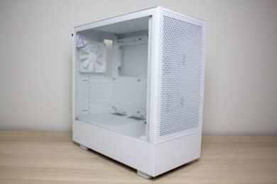Ein weiterer Knackpunkt ist beim NZXT H5 Flow der Preis. NZXT hat den Preis im Vergleich zum H510 Flow um 25€ angehoben. Dafür bekommt man den speziell positionierten Lüfter, eine größere Lüfteröffnung im Deckel und, bei der weißen Variante, einen komplett weißen Tower. Dafür muss man aber in Bezug auf mögliche Datenträger bei H5 Flow zurückstecken. Für diese dezenten Neuerungen erscheinen die 25€ als heftiger Aufpreis. Wer die größere Öffnung im Deckel nicht braucht und nicht gerade eine ganz weiße Variante haben möchte, für den mag das NZXT H510 Flow derzeit noch die bessere Alternative sein.