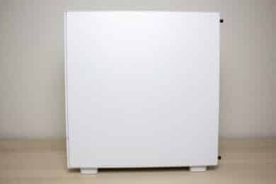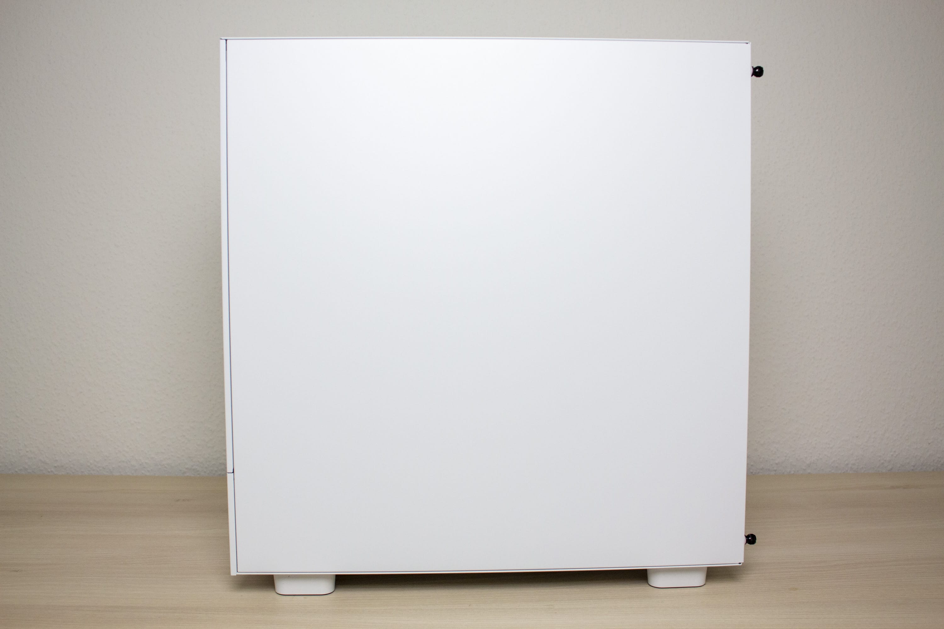Wie wir es von NZXT gewohnt sind, ist die Verarbeitungsqualität auf seinem guten Niveau. Das NZXT H5 besitzt keine scharfen Kanten oder Lackierungsfehler und auch die Haptik ist gut. Einzige Ausnahme ist hier das, für den Preis, zu dünne Stahlseitenteil auf der linken Gehäuseseite. Da überwiegend Stahl zum Einsatz kommt, gibt es zudem kaum bis gar keine Farbunterschiede. Bei den wenigen Kunststoffelementen wurde der weiße Farbton ebenfalls gut, aber nicht perfekt getroffen.