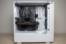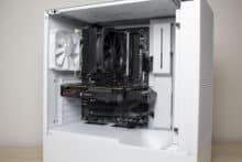 In Bezug auf Luftkühlungskomponenten hat man beim NZXT H5 Flow kaum Einschränkungen. So dürfen CPU-Kühler 165 Millimeter hoch und Grafikkarten maximal 365 Millimeter lang sein, wenn in der Front kein Radiator verbaut wird. Durch den Lüfter im vorderen Bereich darf das Netzteil allerdings maximal 160 Millimeter lang sein. Ebenfalls eingeschränkt sind die Möglichkeiten zum Verbau einer Wasserkühlung. Maximal ein 280-mm- im der Front und ein 240-mm-Radiator im Deckel sind möglich.
