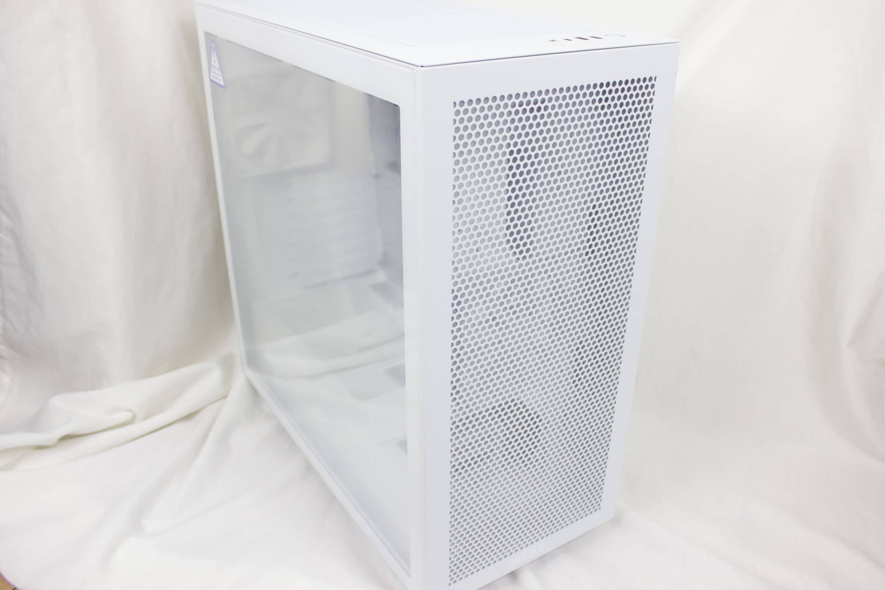 Es ist offensichtlich, dass NZXT beim H7 Flow auf maximalen Airflow setzt. Sowohl die Front, als auch der Deckel sind komplett perforiert. Das führt sich so auf der Rückseite fort. Besonders spannend wirkt das Gehäuse auf den ersten Blick somit nicht, fügt sich durch das Design durch seine Einfachheit aber perfekt in schlichte Arbeitsplätze ein.