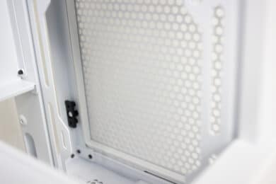 Die bereits erwähnte Vorderseite des H7 Flow ist komplett perforiert, ohne Ausnahme. Das verleiht dem Ganzen Gehäuse seinen schlichten Look, der sich dennoch hervorhebt. Hinter der Front finden wir erst einen Staubfilter, dann den ersten der beiden vorinstallierten Lüfter.