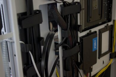 Auch der Einbau von Komponenten inklusive Kabelmanagement kann uns im Test überzeugen. Ihr hab ausreichend Platz und könnt die Kabel hinter dem Mainboard-Tray so verlegen wie ihr sie wollt. Im verbauten Kanal ist für viele Kabel Platz und die Kletthalter sorgen für den nötigen Halt.