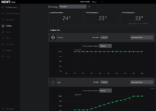 | CPU-Kühler | Temperatur Minimaldrehzahl (in °C) | Temperatur 50% PWM (in °C) | Temperatur 100% PWM (in °C) | Minimale Lüftergeschwindigkeit (in U/min) | Lüftergeschwindigkeit bei 50% PWM (in U/min) | Lüftergeschwindigkeit bei 100% PWM (in U/min) | Minimale Pumpengeschwindigkeit (in U/min) | Pumpengeschwindigkeit bei 50% PWM (in U/min) | Pumpengeschwindigkeit bei 100% PWM (in U/min) |