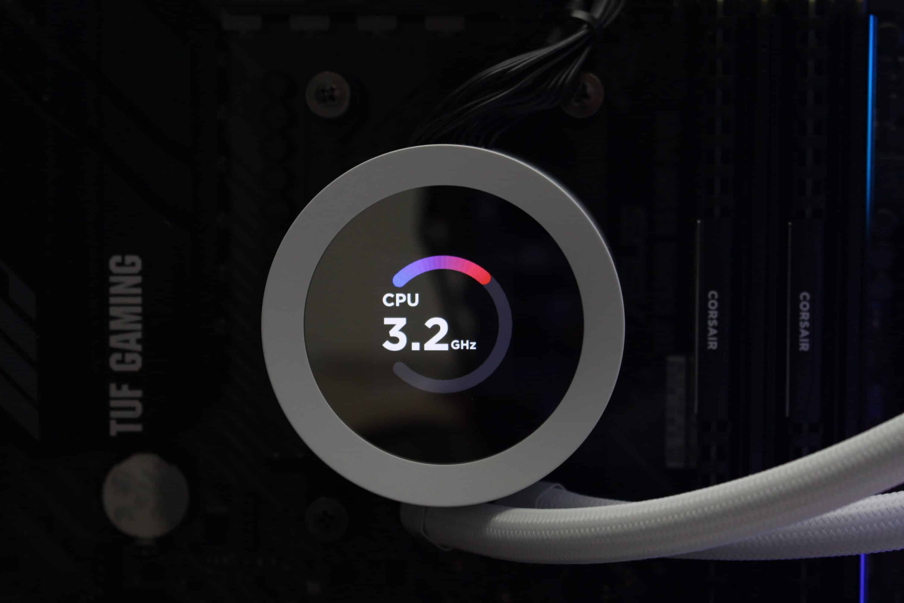Was für die Lüfter gilt, gilt auch für die Pumpe. Das dort intergierte 1,54″-Display ist sowohl in der Lage vordefinierte Elemente wie zum Beispiel die Anzeige von diversen Temperaturen, der Uhrzeit, der Umdrehungszahlen oder der Taktraten darzustellen. Alternativ kann man über NZXT CAM auch auf ein großes Arsenal von GIFs zurückgreifen oder eigene GIFs importieren. Die Größe, die Bildqualität bzw. die Blickwinkelstabilität des Displays sind im Vergleich zu anderen Produkten wie zum Beispiel der ASUS ROG Ryujin III 360 ARGB Extreme leider etwas mau.