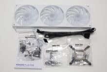 Im Karton setzt der Hersteller zum Schutz der Komponenten auf eine Form aus recycelter Pappe. Darüber hinaus wurden die Elemente der Kompaktwasserkühlung sowie sämtliches Zubehör in Kunststoff gehüllt. Zum Lieferumfang gehören die Radiator-Pumpen-Kombination, der Lüfterrahmen mit drei 120-mm-ARGB-Lüftern, ein schwarzes Anschlusskabel sowie das Montagezubehör in Form von Schrauben, Montagebolzen, Rändelschrauben und einer Backplate. Zuletzt legt NZXT der Kraken Plus 360 RGB auch eine gedruckte Montageanleitung bei.