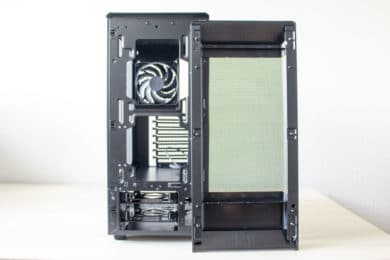 Die potenzielle Verbesserung des Airflow kommt aber auch mit einem Nachteil. Durch die Mesh-Front können natürlich auch Geräusche aus dem Innenraum einfacher nach außen dringen. Zusätzlich erhöht die Abwesenheit von Staubfilter in der Front vermutlich der Reinigungsaufwand und der Käufer muss ab Werk auf jegliche RGB-Effekte verzichten. Bezieht man den Preis von € 1,79 mit ein, bietet dieser Midi-Tower eigentlich alles was man sich für ein solides „Gaming-Gehäuse“ wünschen würde. Das größere Problem ist da aber eher die Konkurrenz.