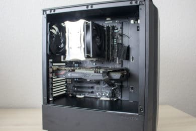 Ab Werk erreicht das Phanteks P300 Air mit dem einen vorinstallierten Lüfter nur durchschnittliche Temperaturegebnisse. Der Prozessor wurde nur leicht übertaktet, die GPU befindet sich komplett auf Standard-Takt. Plant man im P300 Air mit einem noch leistungsfähigerem System, dann sollte man mindestens zwei weitere Lüfter für die Front kaufen. Ansonsten nutzt die Mesh-Front nämlich nicht wirklich viel.