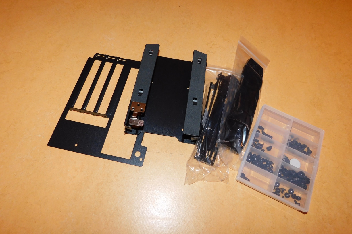 Zusätzlich im Gepäck befindet sich eine Plastikbox, in der alle Schrauben fein säuberlich sortiert und beschriftet wurden. Diese enthält eine selbsthaltende Daumenschraube, 38 Mainboard-/SSD-Schrauben, 8 Lüfterschrauben, 6 Mainboard-Abstandshalter sowie eine Eindrehhilfe, 12 Schrauben zur Netzteilmontage, 14 normale Daumenschrauben, 4 Entkoppler fürs 2. Netzteil, 16 HDD-Schrauben sowie 3 Schrauben zur Befestigung des Riser-Kabels.