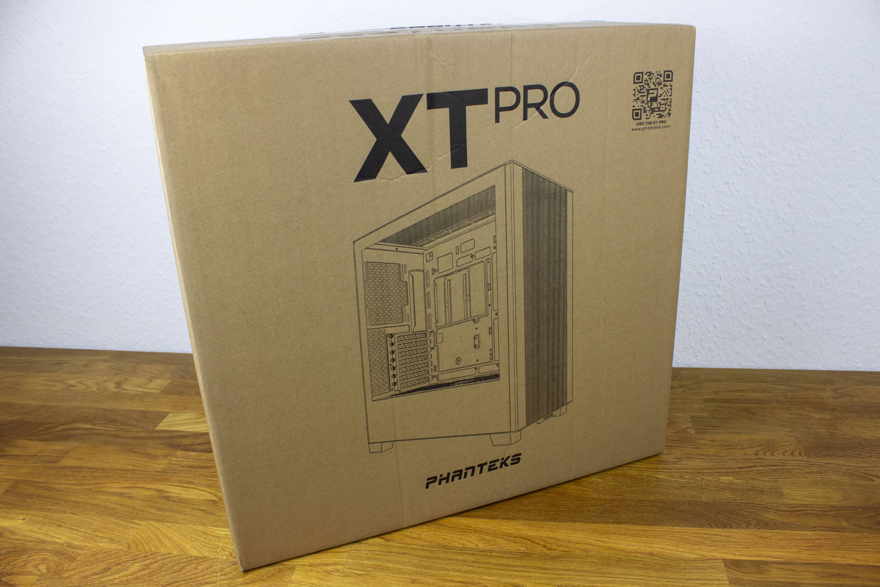 Verpackt ist das Phanteks XT Pro Ultra nur in einem braunen Karton. Aufgedruckt ist auf einer Seite das gesamte Gehäuse, auf der gegenüberliegenden die Frontansicht. Auf einer der kurzen Seiten des Karton finden wir noch ein paar technische Informationen zum Gehäuse selbst. Im Inneren des Kartons ist das Gehäuse gut einpackt. Die typische Plastikfolie um das Gehäuse befindet sich in zwei Styropor-Elementen. Für zusätzliche Transportsicherheit ist das Styropor noch einmal in Pappe eingefasst.