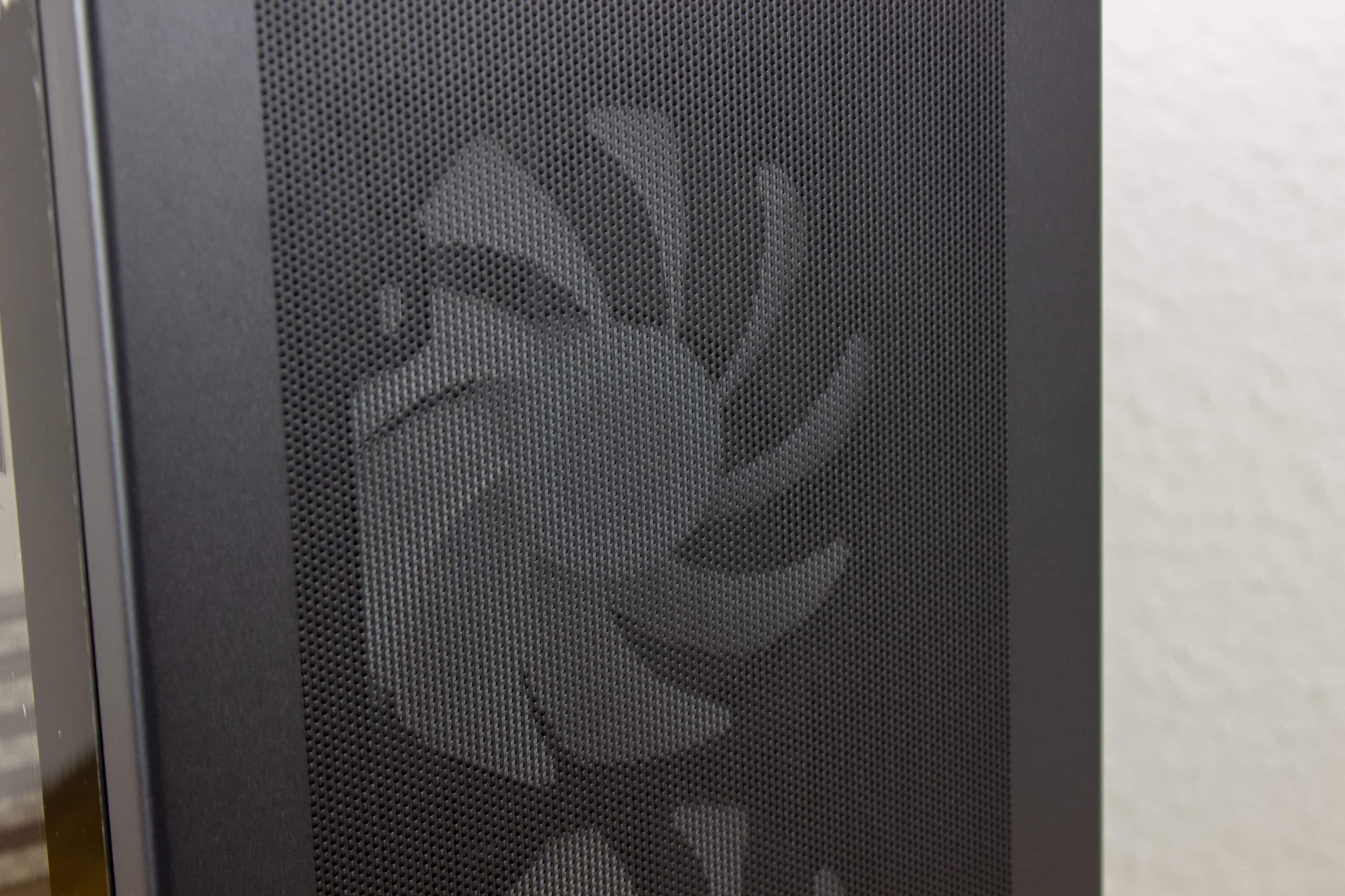 Für optimalen Airflow ist die gesamte Front aus Metall mit sehr feinem Mesh. Sollte sich mal etwas Staub darin verfangen, könnt ihr dieses durch einfaches Ziehen entfernen und reinigen. Direkt hinter der Front befinden sich direkt drei der vier RGB-Lüfter. Diese habe eine Größe von 120 Millimetern, möglich wären aber auch 140 Millimeter-Lüfter in der selben Anzahl oder ein Radiator mit 240 Millimetern. Durch die RGB-Beleuchtung und das Mesh haben wir beim Phanteks XT Pro Ultra einen kleinen Eyecatcher. Direkt darunter finden die einen kleinen Schriftzug des Herstellers.