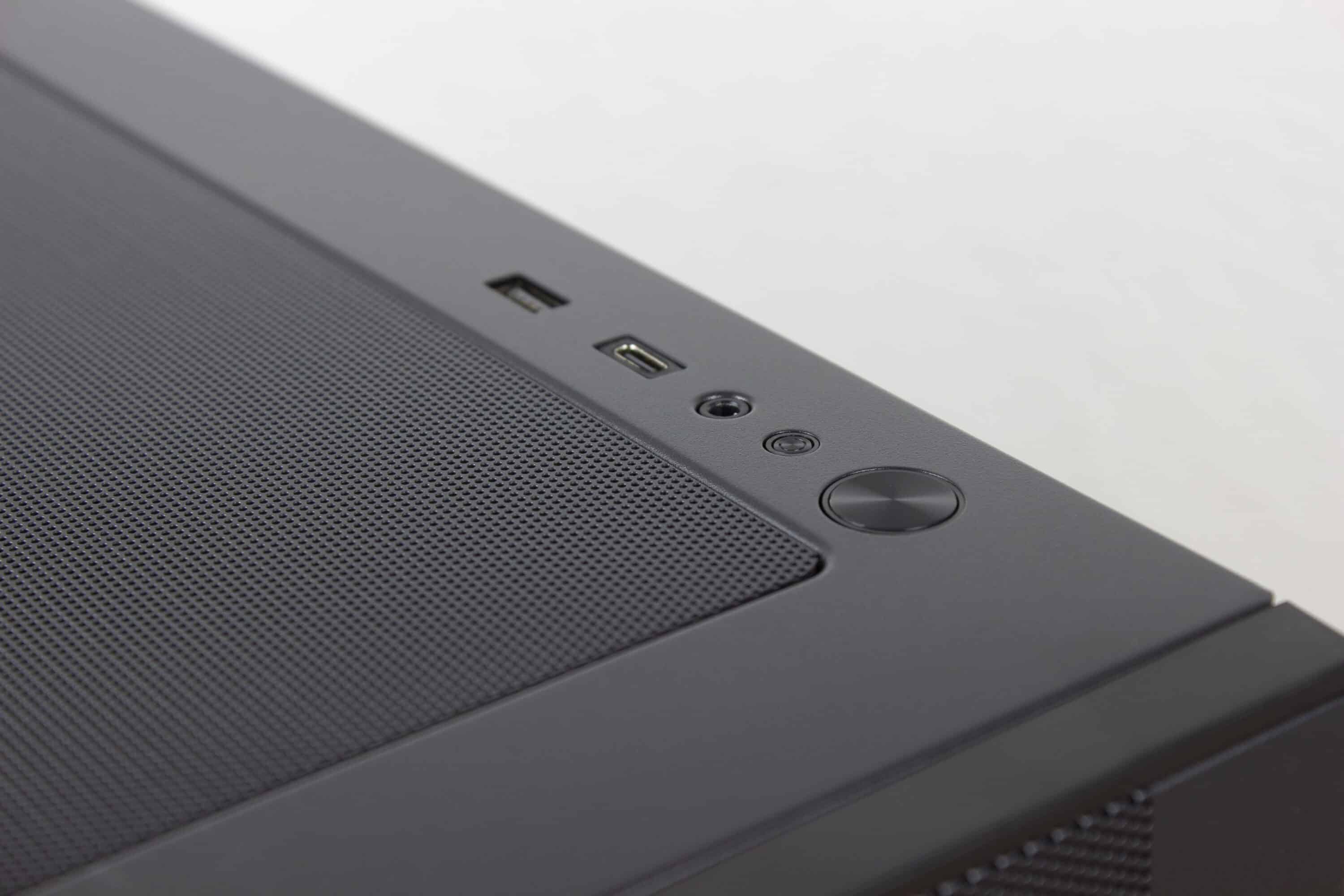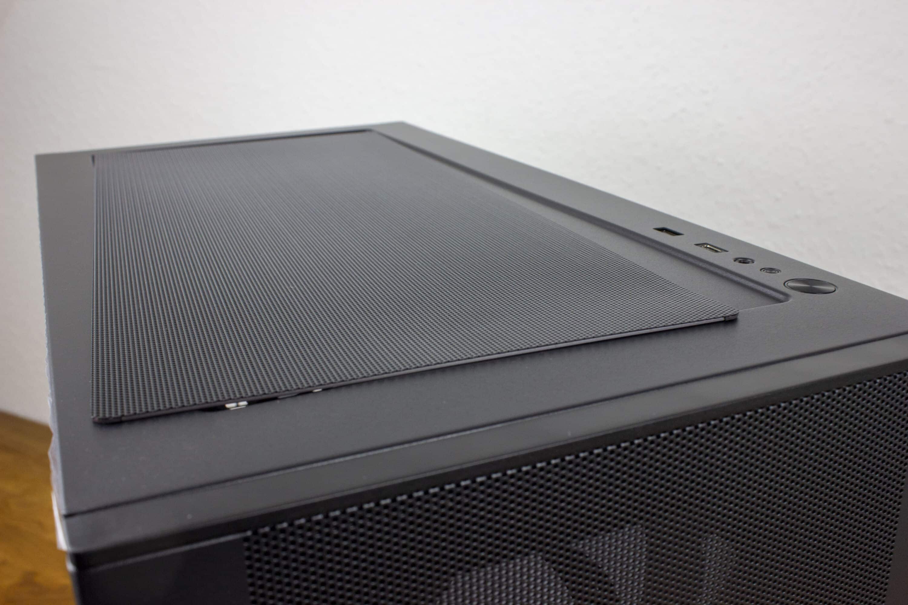 Auf der Oberseite ist das I/O-Panel. Neben dem Anschaltknopf, gibt es auch noch einen für den Reset sowie einen kombinierten 3,5-mm-Audioanschluss. Da es sich bei dem Testgerät um das XT Pro Ultra handelt, bekommen wir außerdem einen USB-C 3.2 Gen 2-Anschluss sowie einen USB-A 3.0. Außerdem gibt es hier noch einen magnetischen Staubfilter zu sehen.