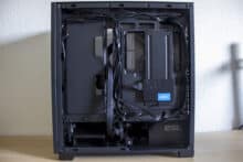 Durch die komplett offene Hauptkammer bekommen wir besonders im vorderen Bereich genug Platz zur Montage von ausreichend Lüftern oder Radiatoren, solltet ihr Wasserkühlung bevorzugen. Die Durchführungen für die Kabel sind nicht gummiert und durch die Größe leidet die Optik ein wenig.
