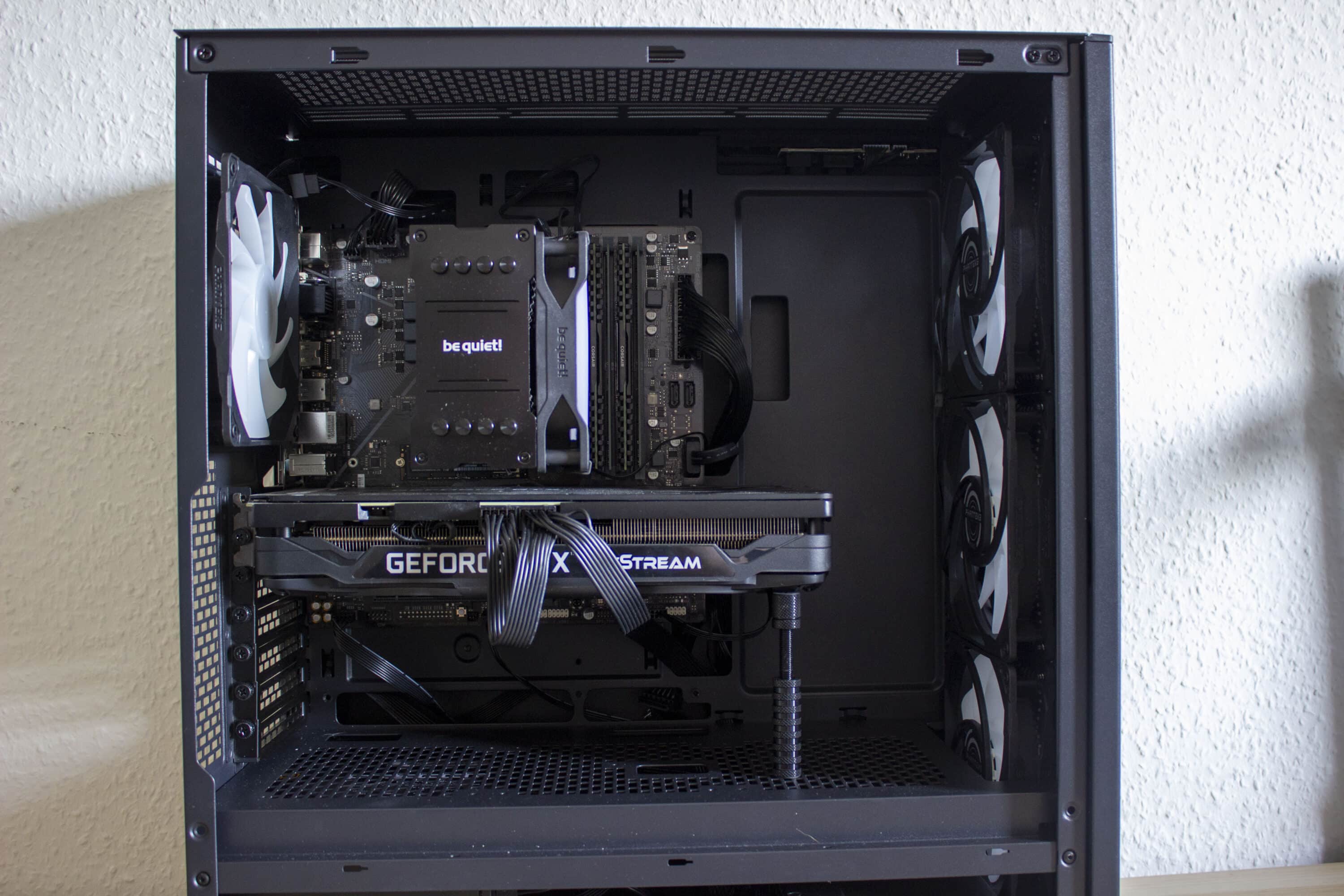 Wir wollen aber auch Hardware in das Phanteks XT Pro Ultra einbauen. Zum Einsatz kommt ein Intel Core i5-10400* verbaut auf einem Gigabyte B460M DS3H V2* mit 16GB Corsair Vengeance LPX LP schwarz DDR4-3200 RAM*. Gekühlt wird von einem be quiet! Pure Rock 2*. Als Grafikkarte verwenden wir eine Palit GeForce RTX 3070.
