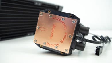 Leider war die Pumpe bei unserem Test durchgehend hörbar – und sogar laut hörbar. Laut Raijintek wurde dies bereits behoben, indem die Pumpe besser ausbalanciert und mit einem Schaum zusätzlich gedämpft wurde. Da derzeit keine Produkte lagernd sind, konnten wir jedoch nicht mit einem Austauschgerät der neuen Revision versorgt werden. Bei unserem Testgerät gibt es durchgehend ein störendes Pfeifen.