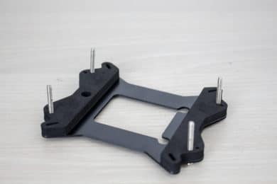 Auch wenn die Montage auf den Bildern der beigelegten Anleitung sehr einfach aussieht, so entpuppt diese sich in der Realität doch als recht aufwendig bzw. stellenweise sogar unnötig kompliziert. Aber beginnen wir am Anfang. Zur Befestigung des Kühlkörpers wird eine Universal-Backplate für alle Sockel verwendet. Diese verfügt über Schaumstoff und diverse Bohrungen. Als erstes müssen vier lange Schrauben durch die entsprechenden Löcher der Backplate gesteckt werden. Hier kam es direkt zur ersten kleineren Unterbrechung. Die Löcher im Schaumstoff sind so klein, dass man die langen Schrauben dort erst nach ein paar Anläufen durchgesteckt bekommt. Anschließend wird das Mainboard auf die Backplate gelegt und dann folgen vier Isolierscheiben und vier Abstandsbolzen. Diese verfügen leider über ein Gewinde und müssen mit unnötig hohem Aufwand und unter Zuhilfenahme eines Schraubendrehers fest angezogen werden.