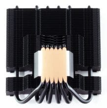 Der Raijintek Pallas setzt auf sechs Heatpipes mit einem Durchmesser von jeweils sechs Millimetern. Diese verbinden die Baseplate mit dem Radiator, der flach über dem Mainboard liegt. Abseits der direkt auf dem CPU-Kühler aufliegenden Fläche sind alle Teile des Kühlers vollständig in schwarz gehalten