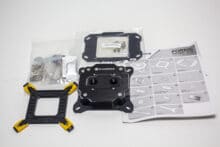 Der Raijintek FORKIS ELITE CPU-Block eignet sich sowohl für Intel- als auch AMD-Systeme. Da wir auf einem AMD-System testen, mussten wir zuerst den Halterahmen entfernen und den AMD-Rahmen am Kühlblock anbringen. Das erforderte die Entfernung von vier Schrauben. Anschließend konnte das Mainboard für die Montage vorbereitet werden.