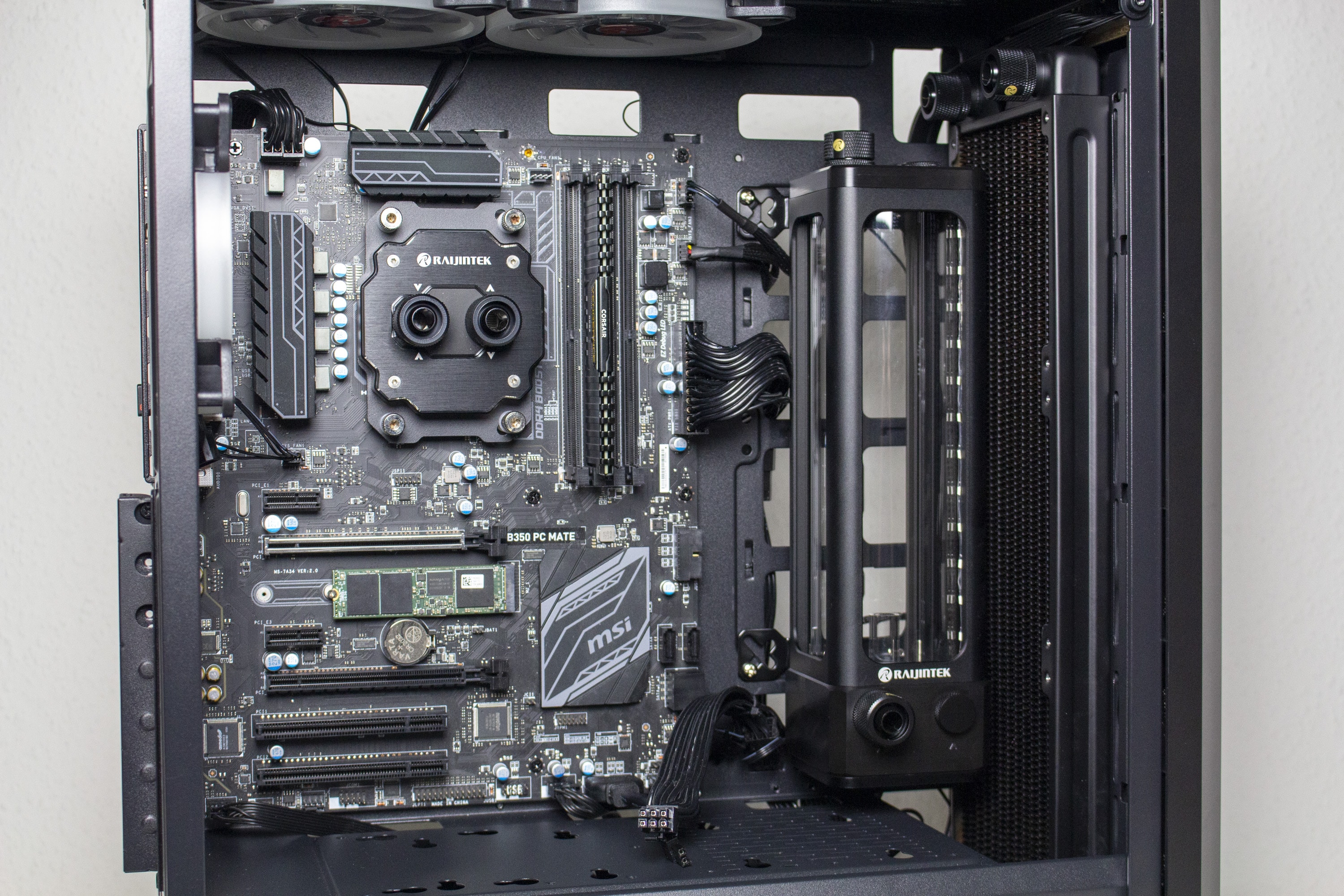 Für das Review von Kühlungssystem kommt bei uns in der Regel ein Benchtable zum Einsatz. In diesem Fall machen wir aber eine Ausnahme und verwenden stattdessen das Raijintek Ponos MS4 als Träger für die Wasserkühlung. Weiterhin besteht das Testsystem aus den folgenden Komponenten.