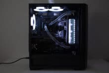 Die Verarbeitung sowie Lackierung von AGB, Radiator, den Lüftern und dem Kühlblock sind insgesamt auf einem sehr hohen Niveau. Alle Komponenten wirken sehr wertig und sind durch die RGB-Beleuchtung auch optimal für ein Show-System geeignet.