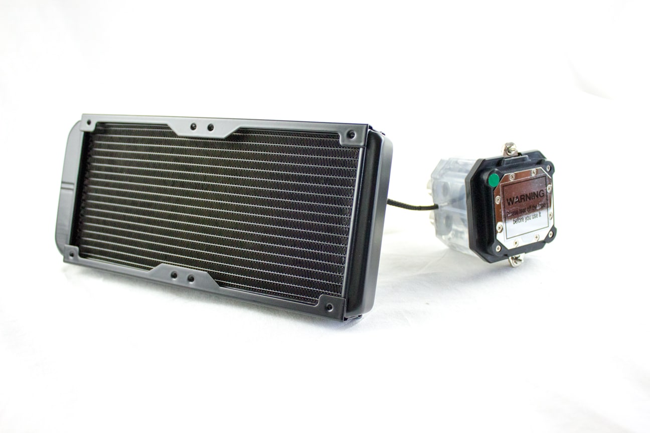Nach dem Auspacken fiel sofort der Umfang der Lieferung ins Auge. Neben dem Radiator, den vormontierten Schläuchen und der Pumpe inklusive Ausgleichsbehälter, gab es allerhand Extras dazu. Neben dem üblichen Montagematerial, gab es außerdem noch zusätzliche Flüssigkeit zum Nachfüllen und Farbe zum Einfärben.