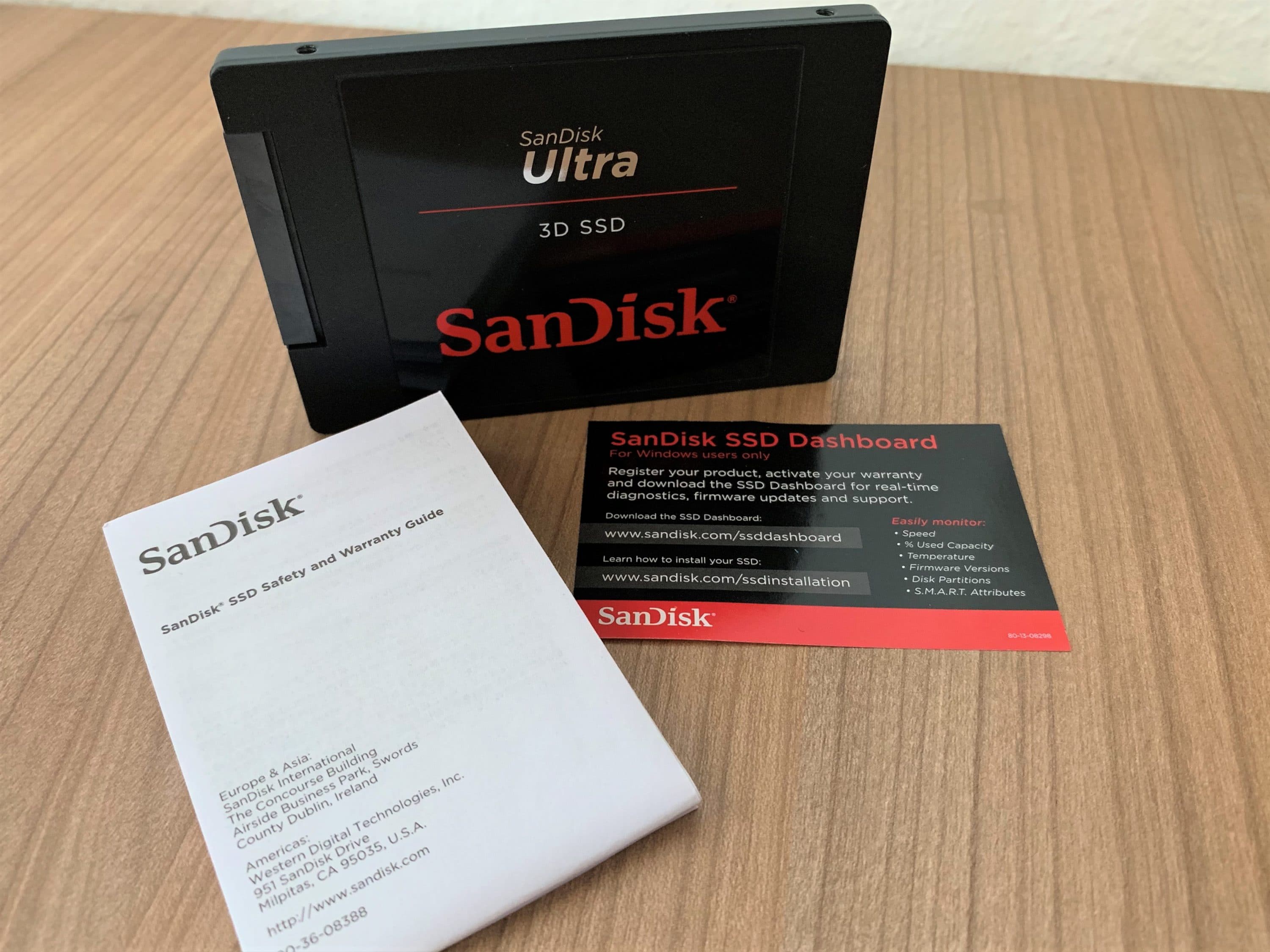 Die SSD kommt ohne physisches Zubehör. Neben der SSD sind einzig Informationen zur Garantie und zur Software „SanDisk SSD-Dashboard“ beigefügt. Über den Internetauftritt von SanDisk kann diese bezogen werden. Das Programm „SanDisk SSD-Dashboard“ kann unter anderem die verfügbare Kapazität, die Betriebstemperatur und die SMART-Attribute anzeigen.