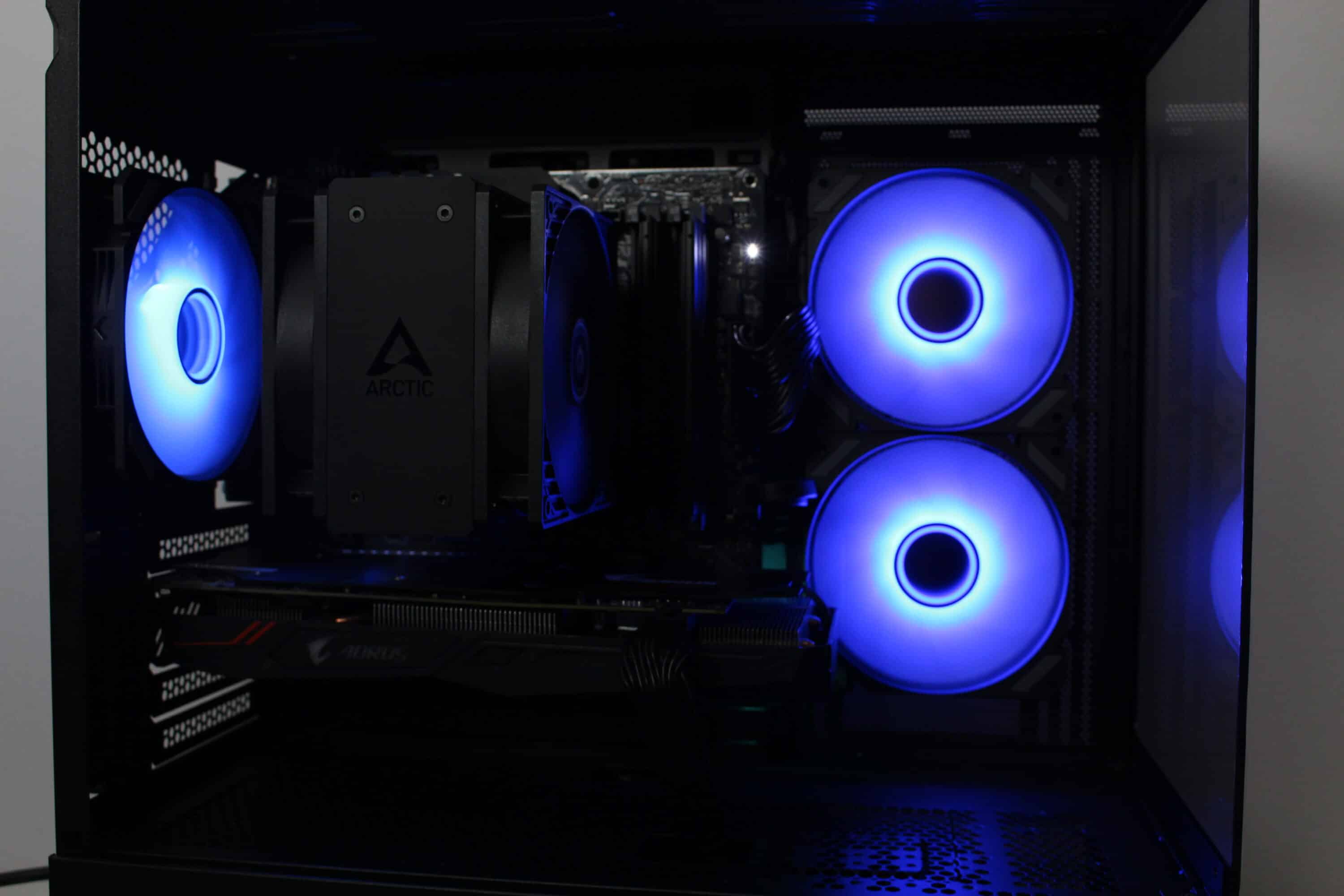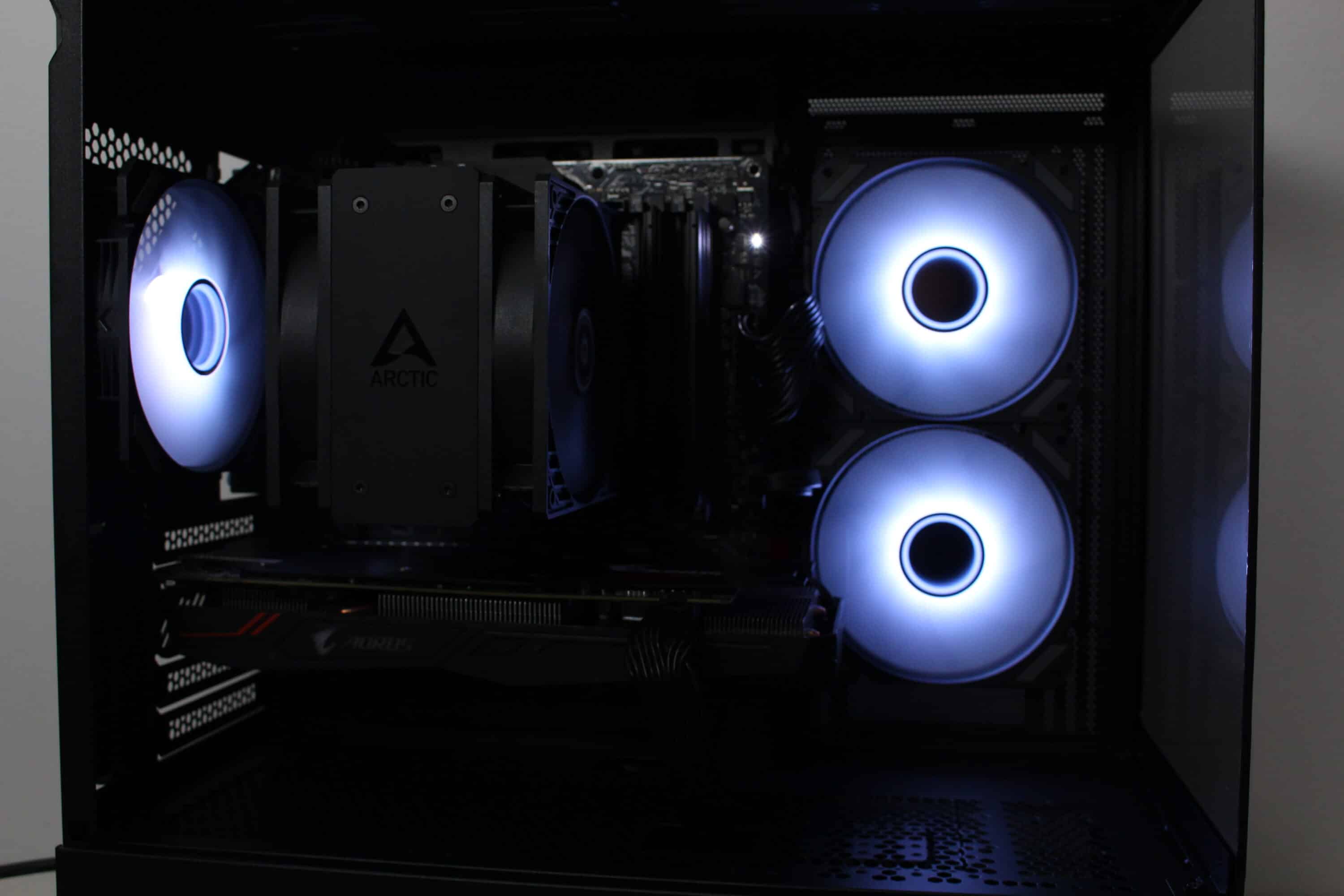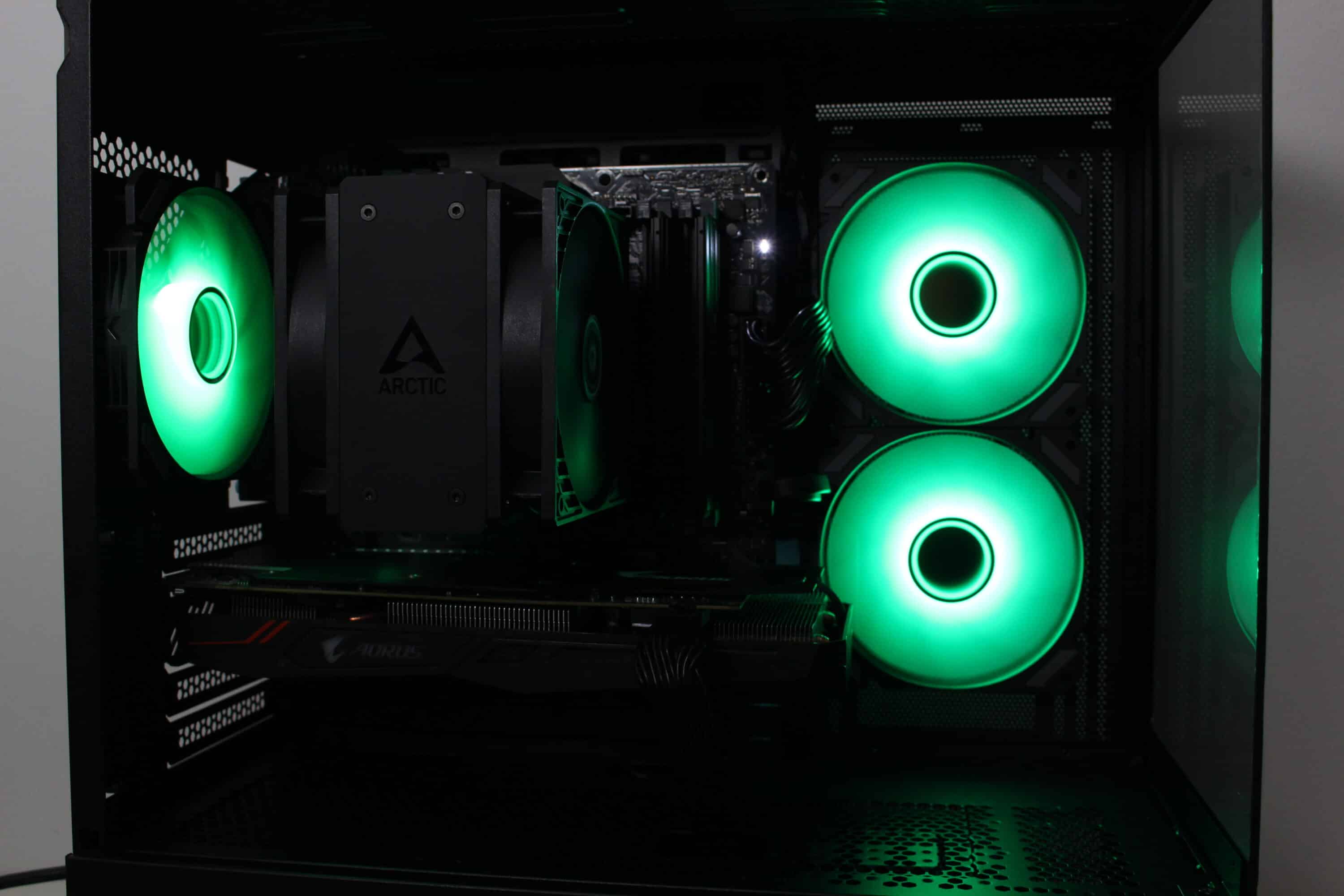 Bei voller Umdrehungszahl von fast 1800 Umdrehungen pro Minute ist es jedoch nicht verwunderlich, dass die Lüfter deutlich aus dem Gehäuse herauszuhören sind. Dennoch machen sie dabei ordentlich Wind und sorgen für eine ordentliche Kühlung des Prozessors sowie der Grafikkarte. Durch den großen Drehzahlbereich lassen sich die Lüfter aber auch deutlich leiser bzw. silent-tauglich betreiben.