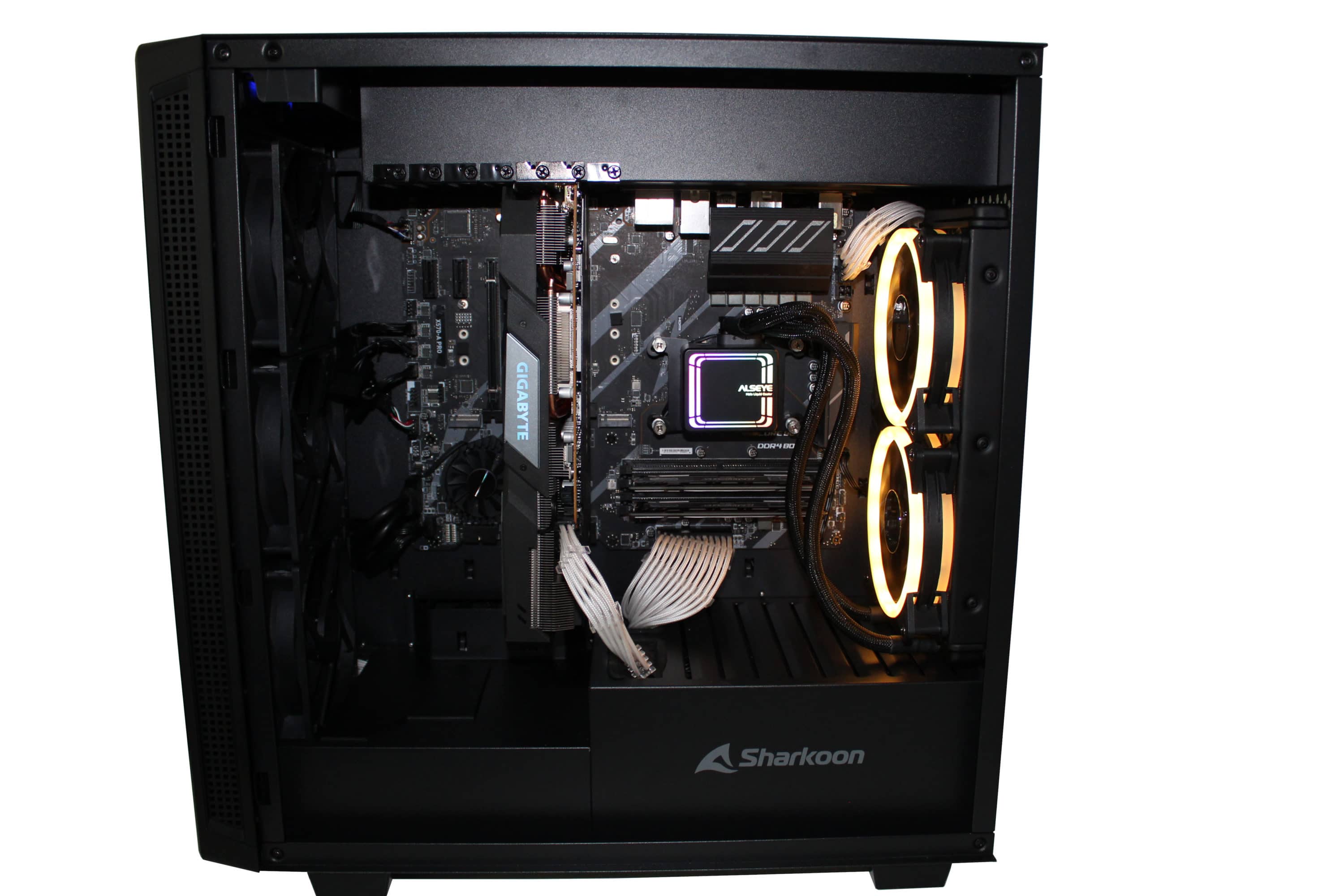 Um den alternativen Aufbau zu testen, verbauen wir natürlich ein Testsystem. Dies besteht aus einem Ryzen 5 3600, der auf einem MSI X570-A Pro thront. Das Ganze wird mit 16 GB RAM und einer GIGABYTE RX 5600 XT GAMING OC. Die Stromversorgung erfolgt über ein BeQuiet! Straight Power 11 und die CPU wird durch eine ALSEYE H240 gekühlt.