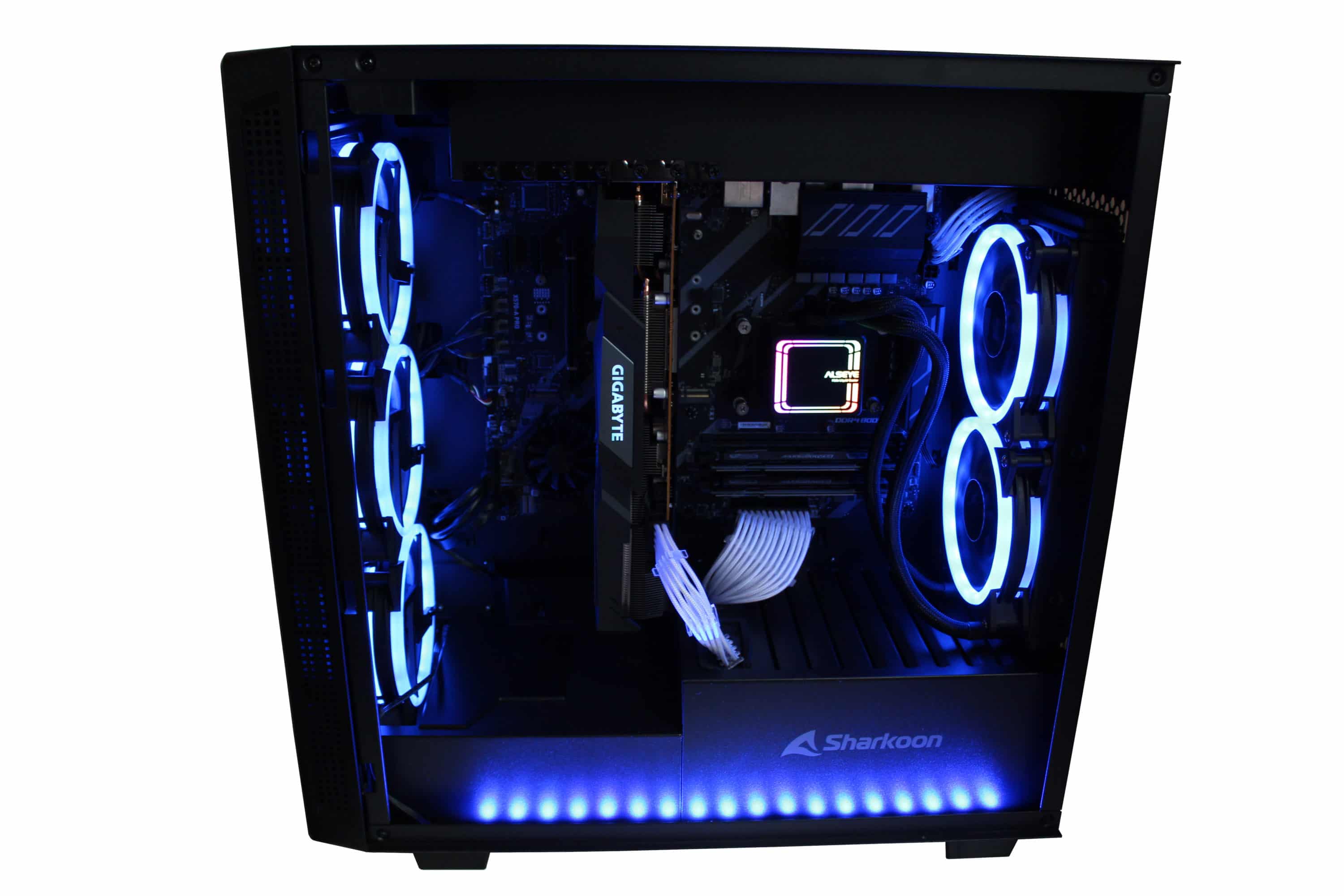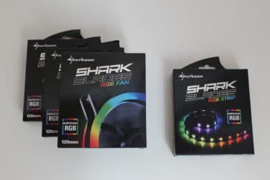 Sharkoon hat uns freundlicherweise drei weitere RGB-Lüfter (Sharkoon Blades RGB Fans) und einen RGB-Streifen (Sharkoon Blades RGB Strip) zur Verfügung gestellt. Um das Gehäuse durch und durch in RGB erstrahlen zu lassen, haben wir auch diese Produkte verbaut.