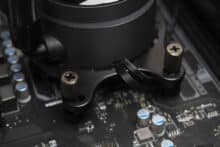 Die Montageprozedur ist bei allen AiO-Wasserkühlungen von Sharkoon identisch. Im Folgenden erläutern wir den Ablauf auf einem AM4-Mainboard. Die Montage bei Intel funktioniert größtenteils analog, nur dass ein anderer Halterahmen sowie die mitgelieferte Backplate verwendet werden müssen.